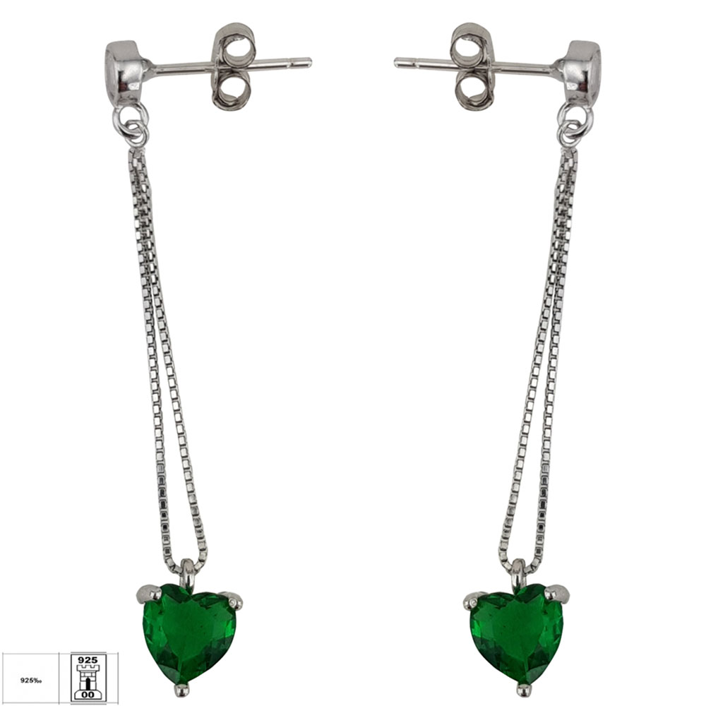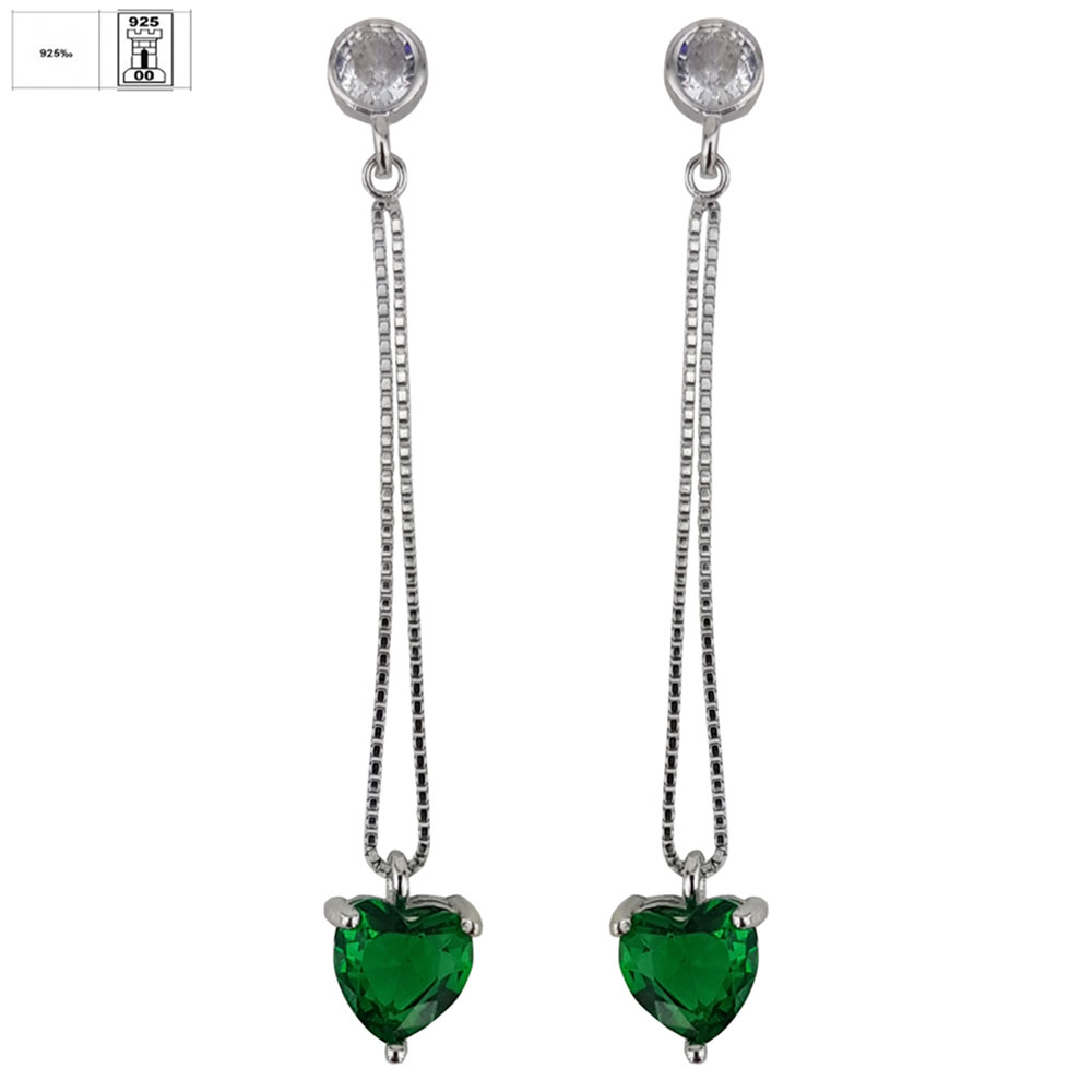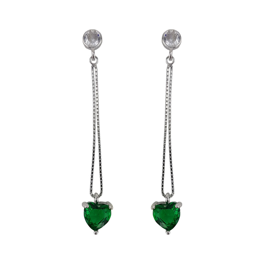 Adauga o nota de rafinament tinutelor tale cu cerceii din argint 925 Thia, o piesa delicata ce imbina eleganta clasica cu accente moderne. Acest model sofisticat se remarca printr-un design suspendat, unde un lant fin din argint de inalta calitate sustine o piatra zirconiu verde, taiata in forma de inima.