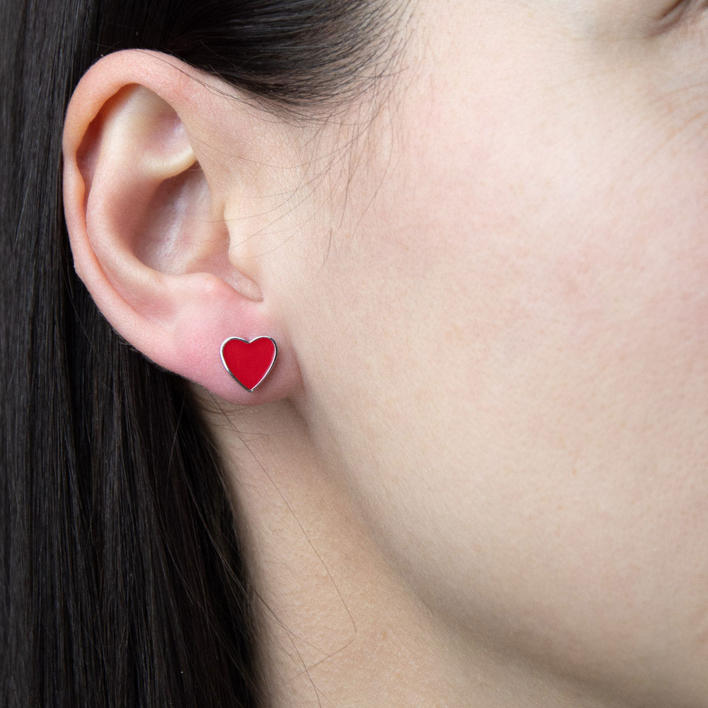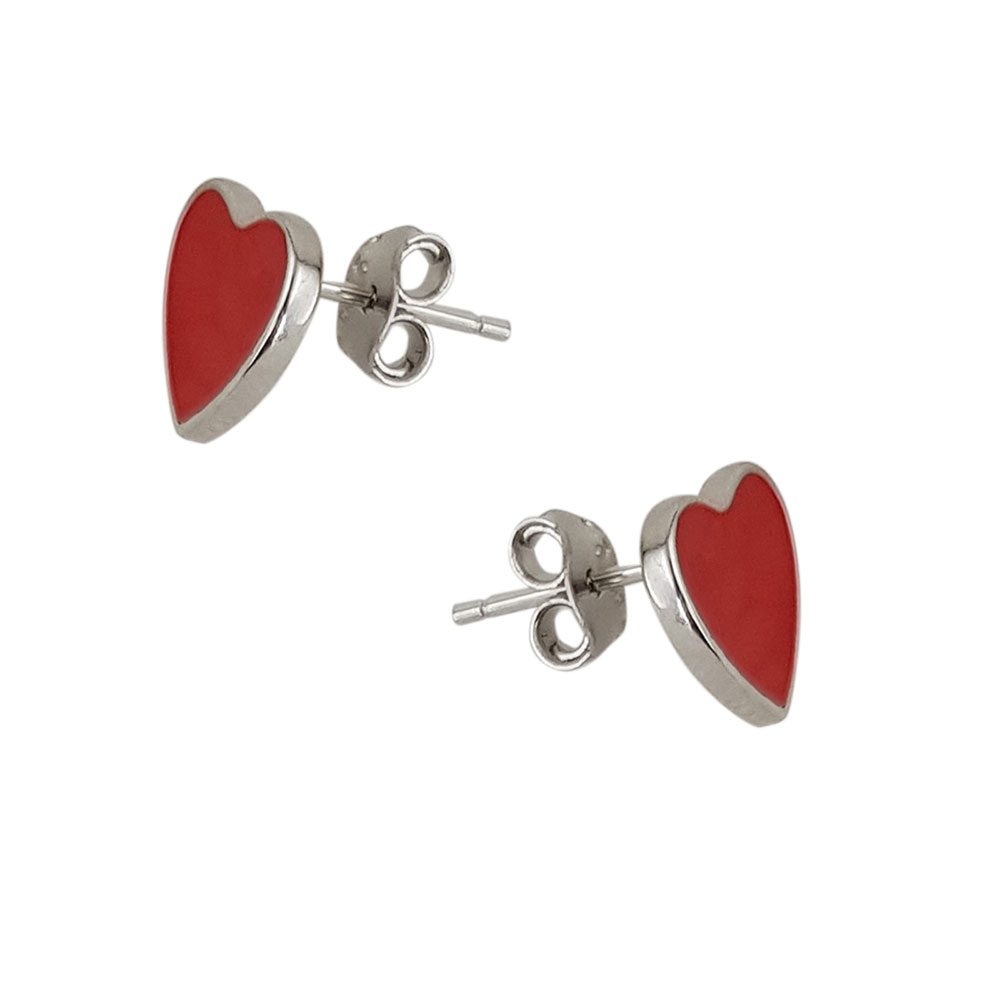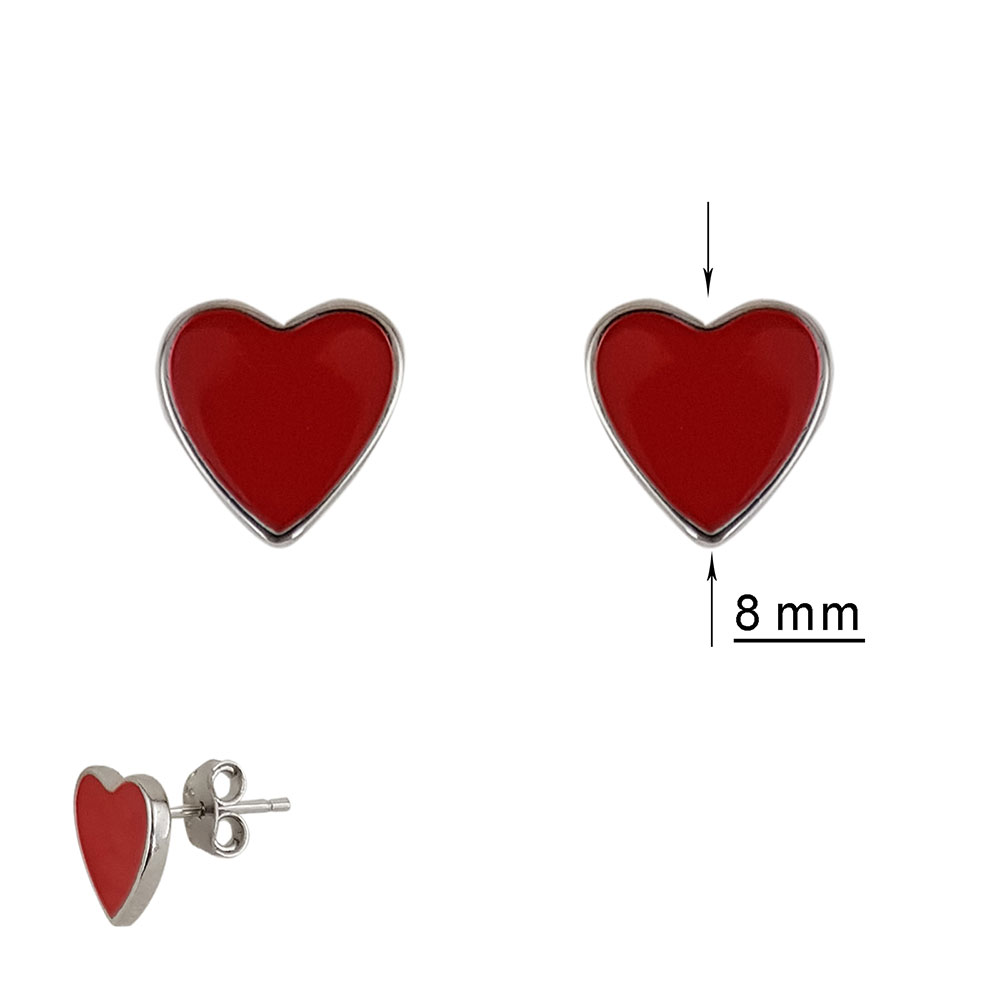 Cercei din argint 925, inima cu email rosu. Sistem de inchidere surub.