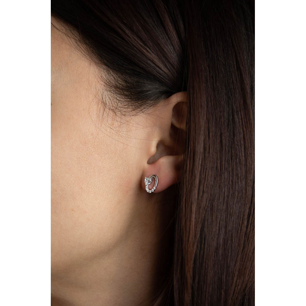 Cercei din argint 925, forma ovala, decorati cu zirconii albe. Cerceii se inchid cu surub.