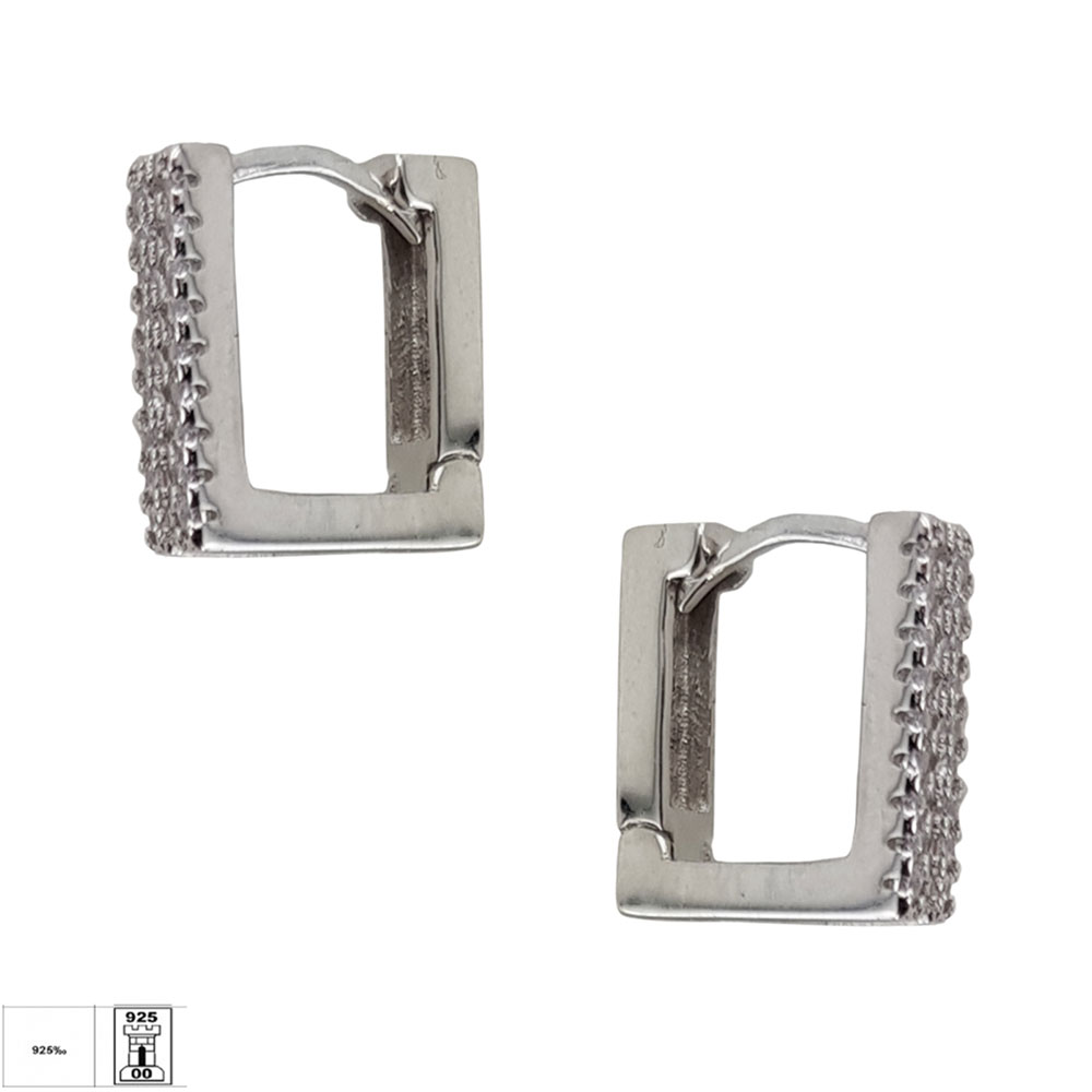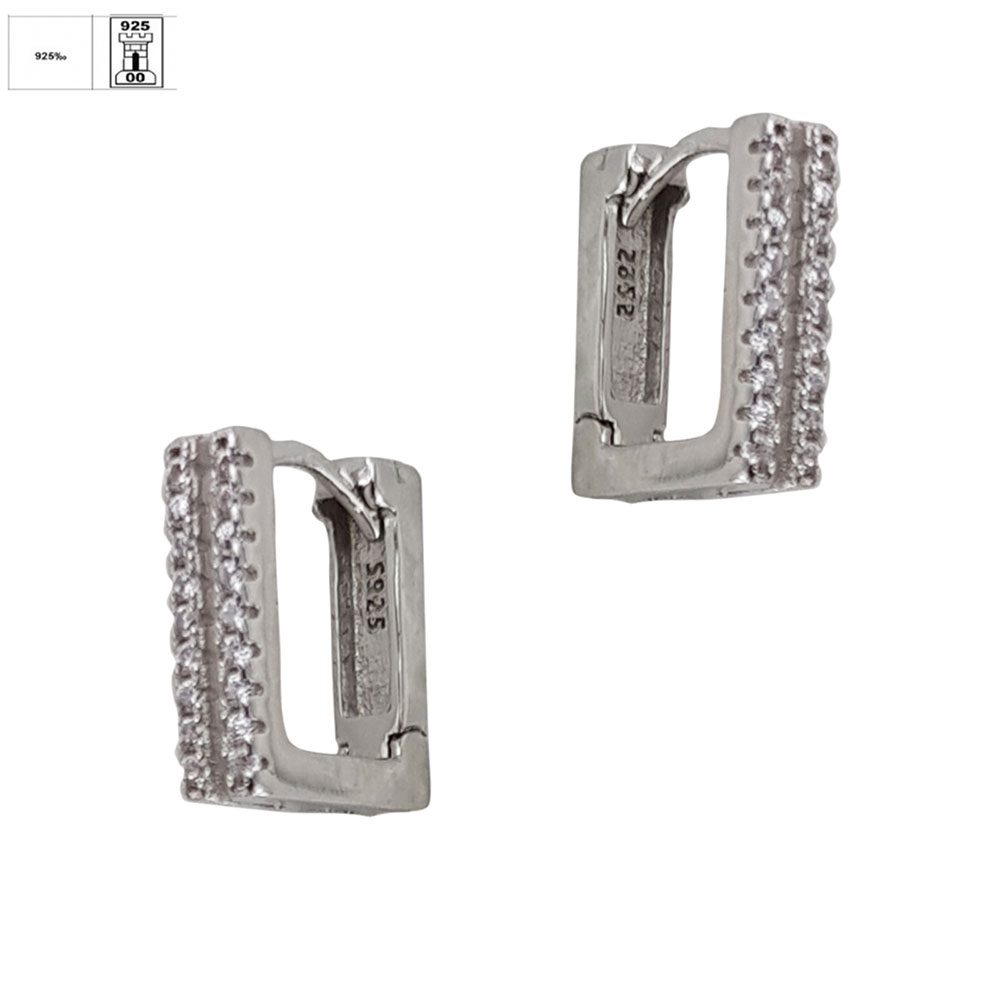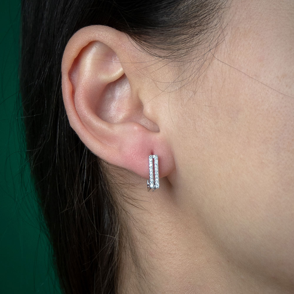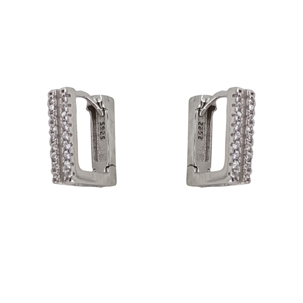 Forma patrata a cerceilor din argint 925 Thia ofera o nota contemporana si geometrica, iar zirconiile mici albe incrustate pe intreaga suprafata adauga un joc stralucitor de lumina si o doza de stralucire bijuteriei.