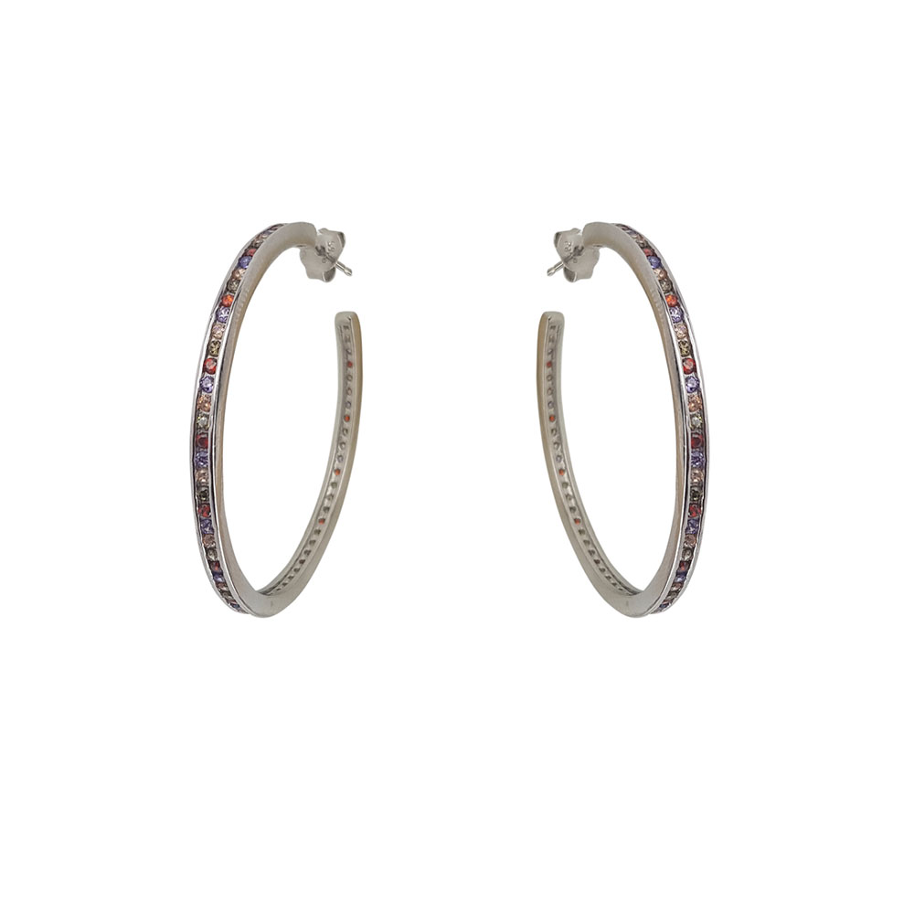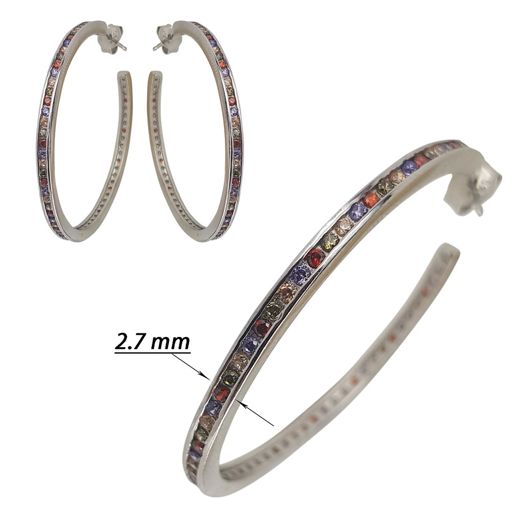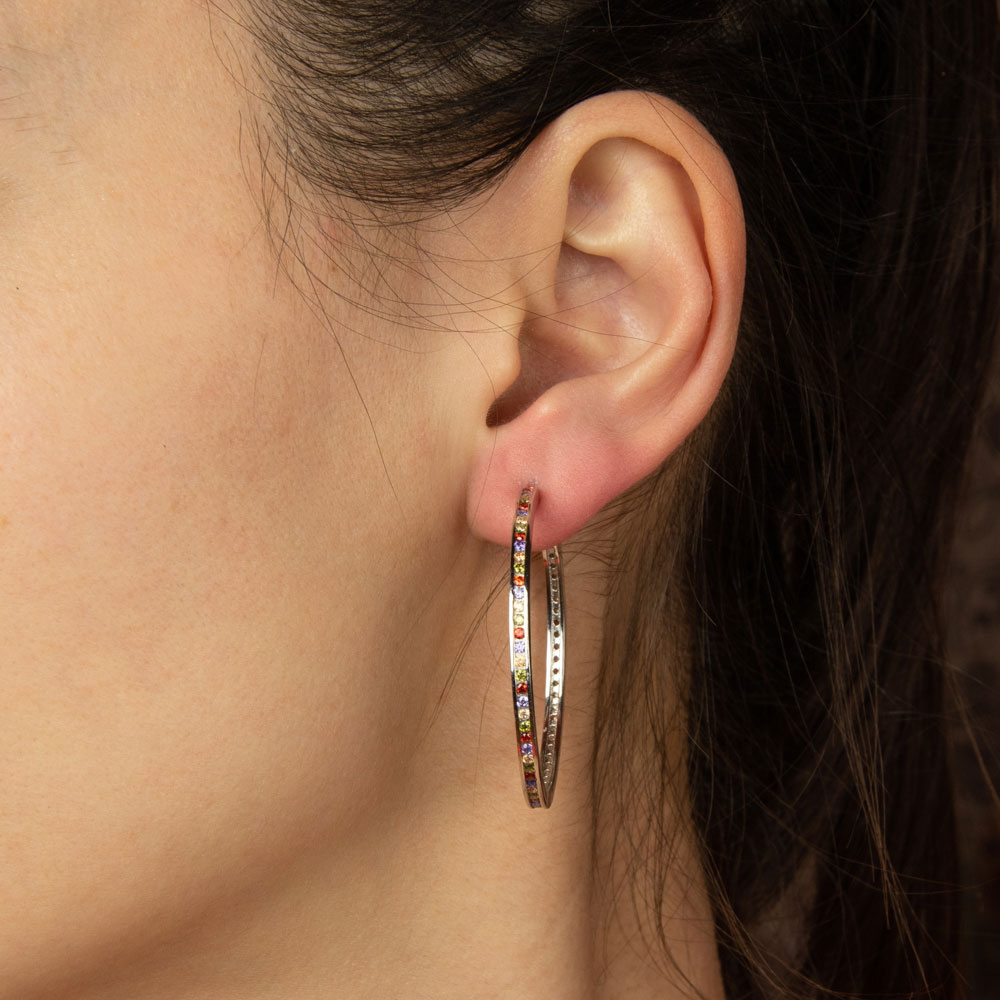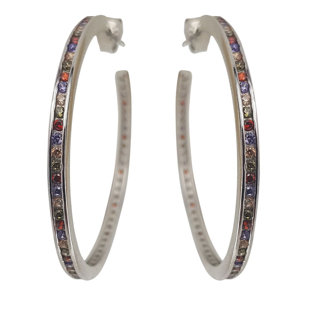 Descoperiti eleganta si rafinamentul in fiecare detaliu cu Cerceii argint rotunzi de 40 mm colorati de la Rankine. Fiecare pereche de cercei este meticulos lucrata din argint 925, garantand nu doar stralucirea, dar si durabilitatea. Incrustati cu zirconii multicolore, acesti cercei aduc un plus de culoare si eleganta tinutei dumneavoastra.