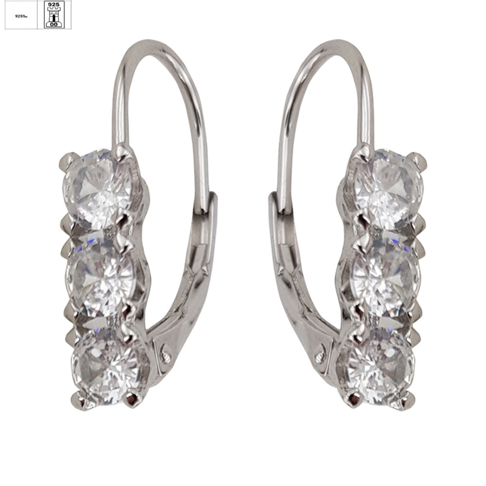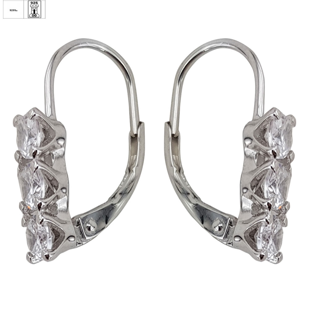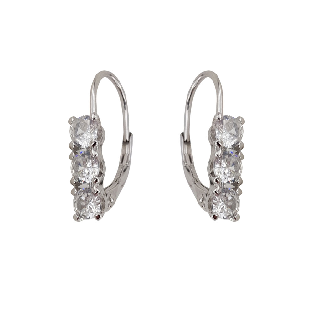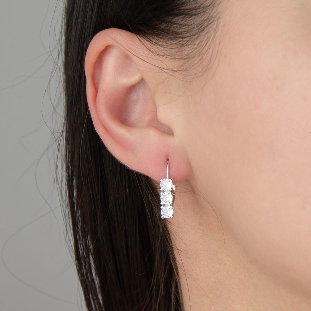 - Design cu trei zirconii albe stralucitoare, aranjate vertical pentru a capta si reflecta lumina din fiecare unghi.