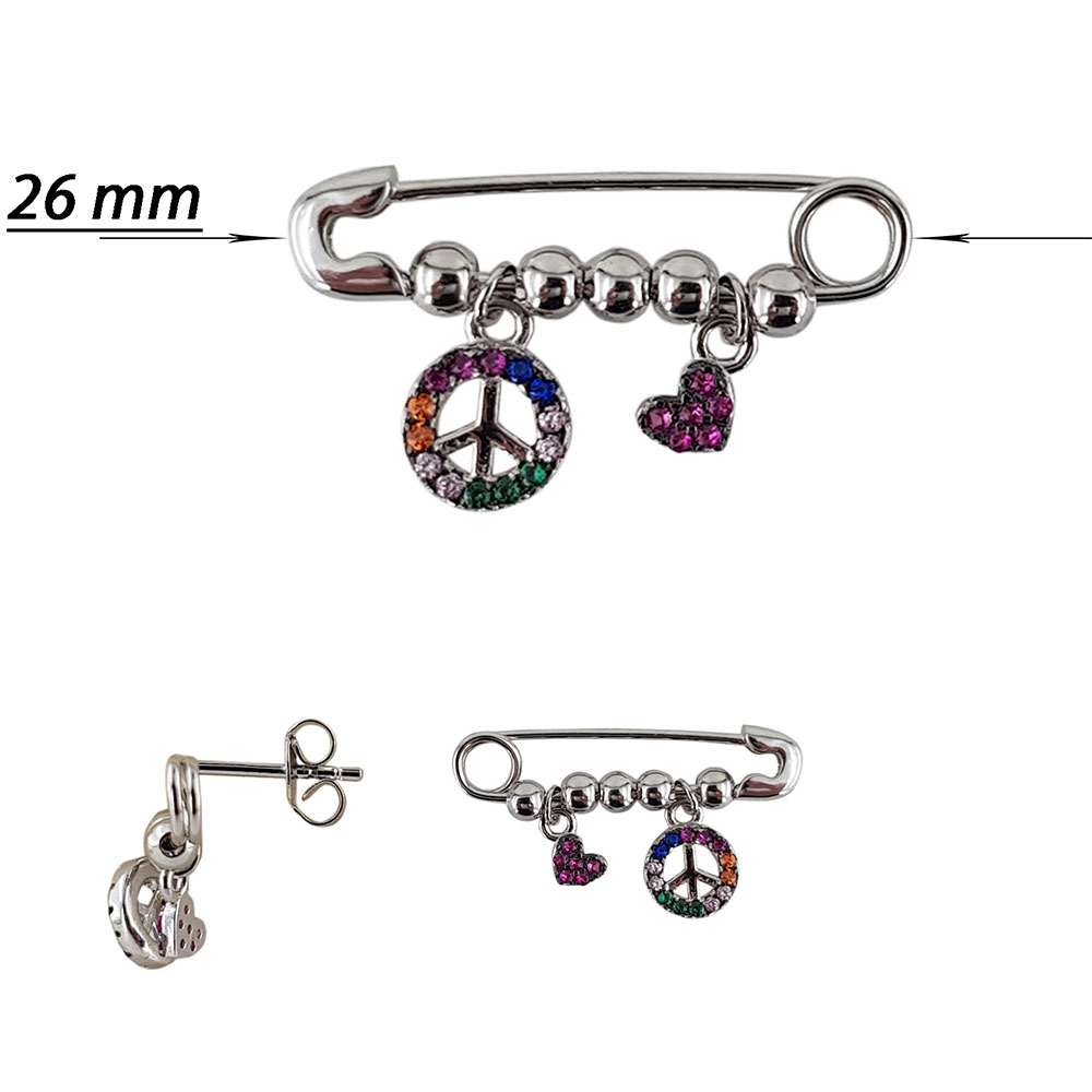 Explorati lumea rafinamentului cu aceasta pereche unica de cercei din argint, care imbina clasicul cu modernul intr-o maniera irezistibila. Realizati din argint 925, acesti cercei sunt nu doar frumosi, dar si durabili, asigurandu-va ca veti putea sa va bucurati de ei ani de zile. Forma originala de ac de siguranta este accentuata de lumina stralucitoare a zirconiilor multicolore, fiecare piatra fiind meticulos fixata pentru a reflecta lumina din toate unghiurile.