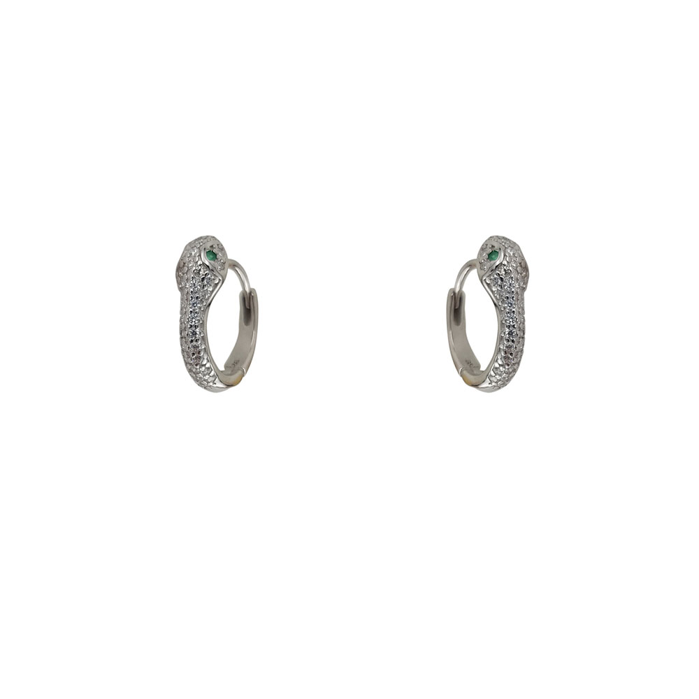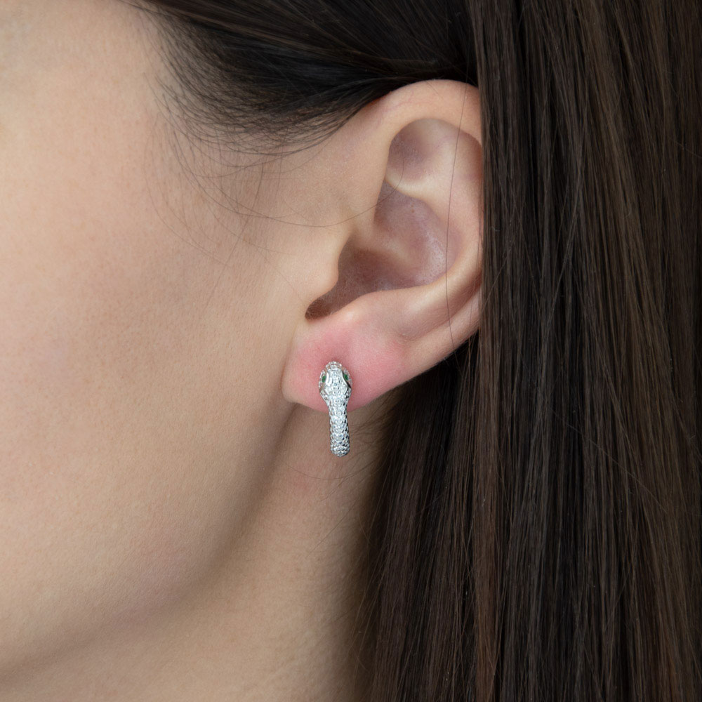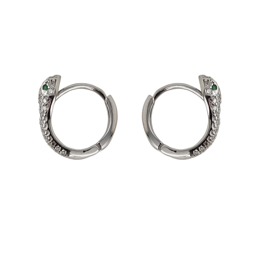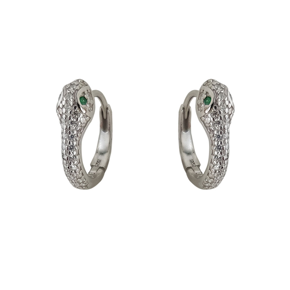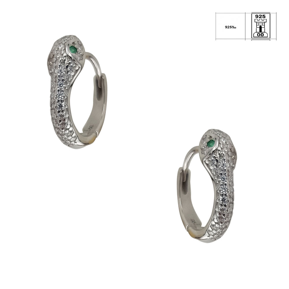 Adauga acesti cercei Thia din argint, model sarpe decorat cu zirconii albe si ochii cu zirconii verzi, la tinuta ta de zi cu zi pentru a face o impresie indrazneata, la ei poti adauga inelul FYR16168-59-2 .