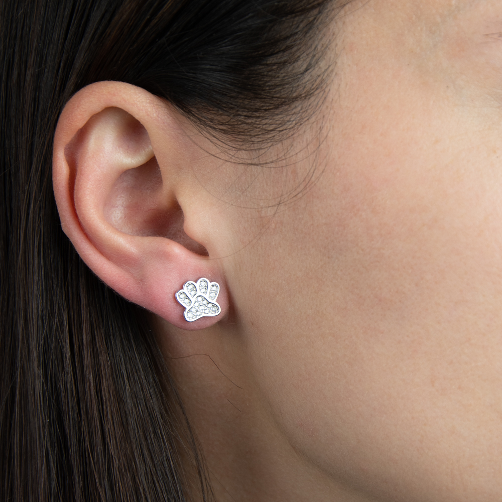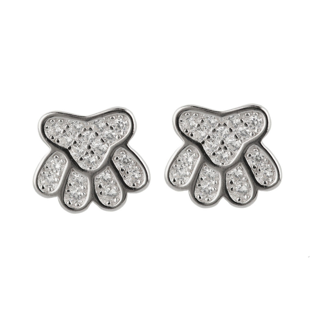 Cercei din argint 925, model labuta, decorati cu zirconii albe. Cerceii se inchid cu surub.