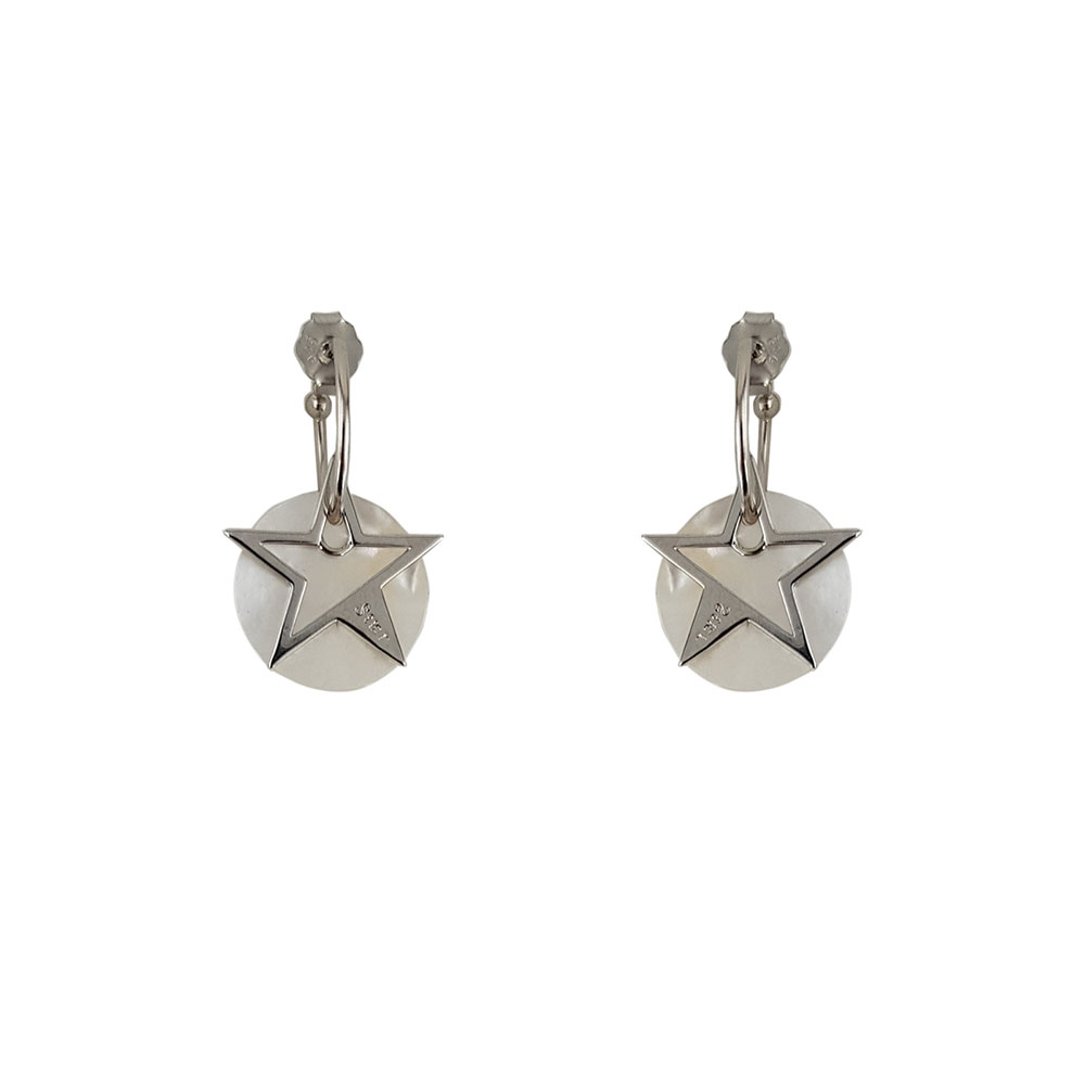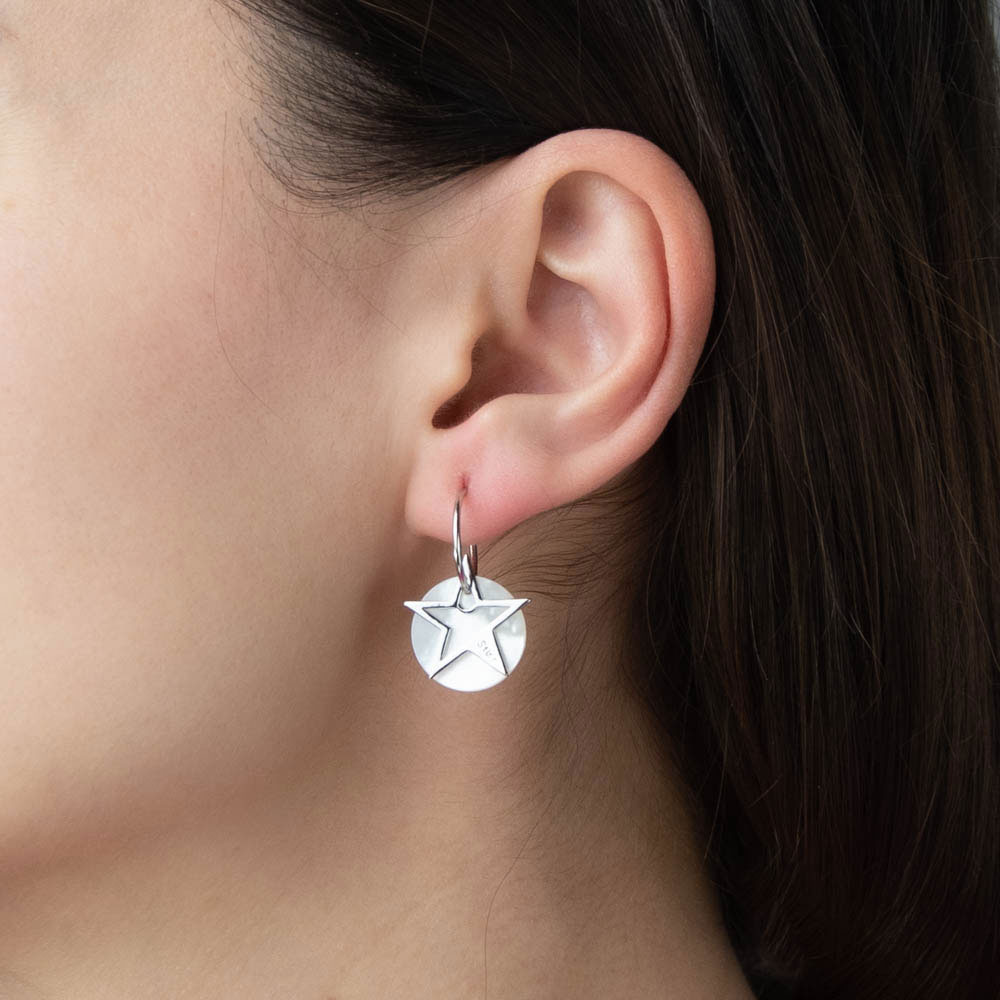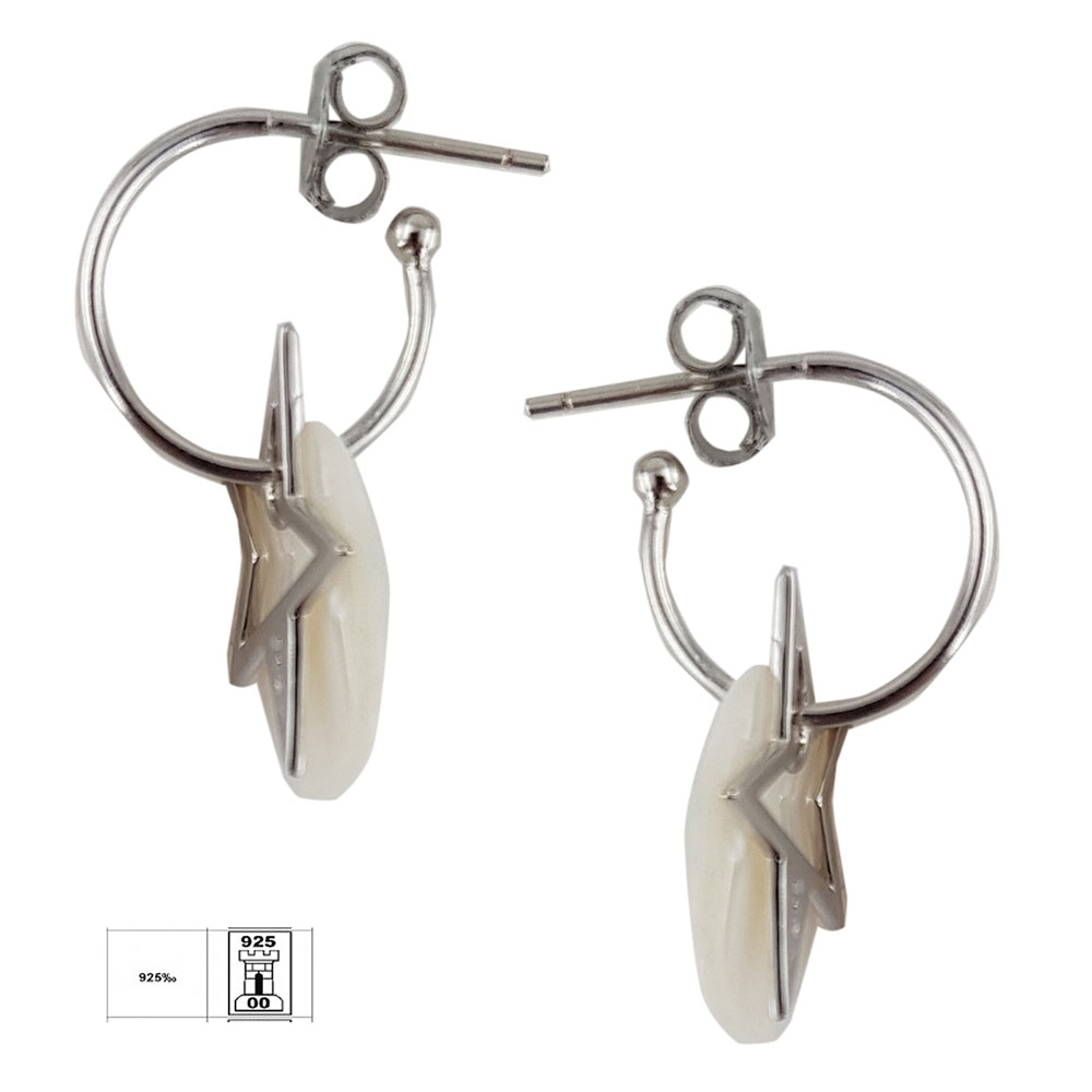 Cerceii din argint 925 Thia sunt accesoriul ideal pentru orice tinuta. Modelul are o creola din argint deschisa ce are atasat un banut din sidef si o stea din argint cu un detaliu delicat star", acestea fiind detasabile.