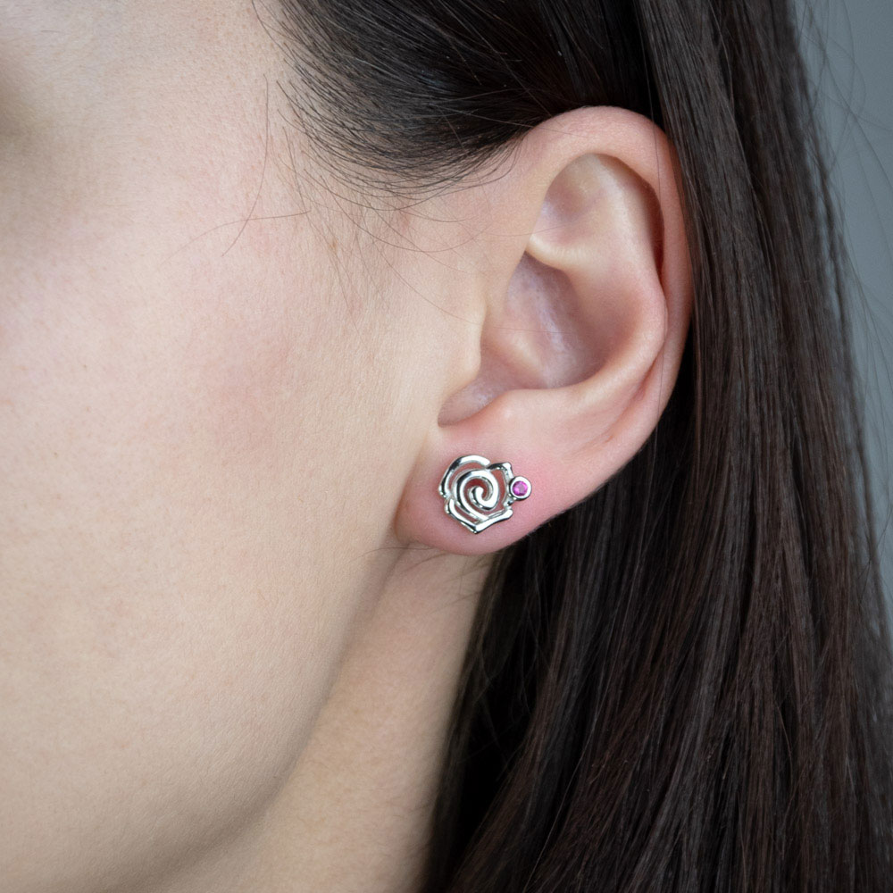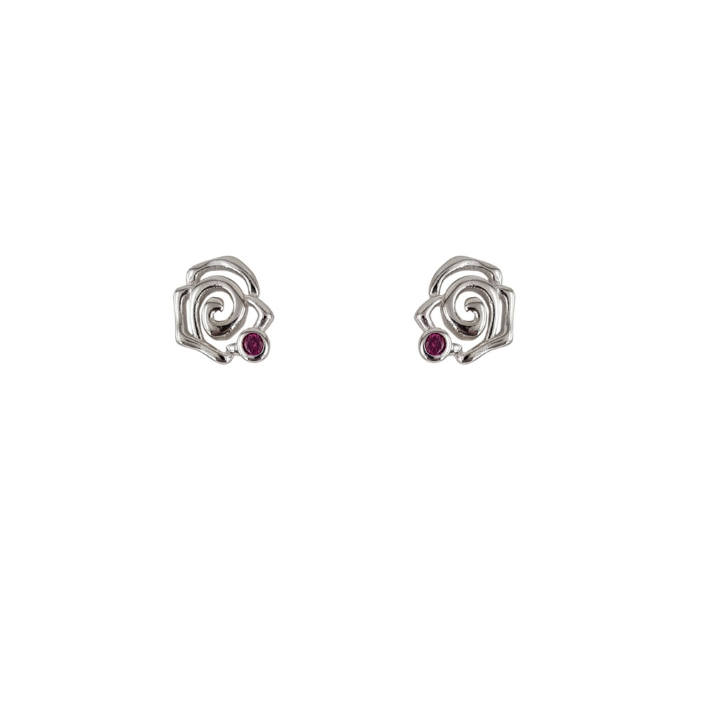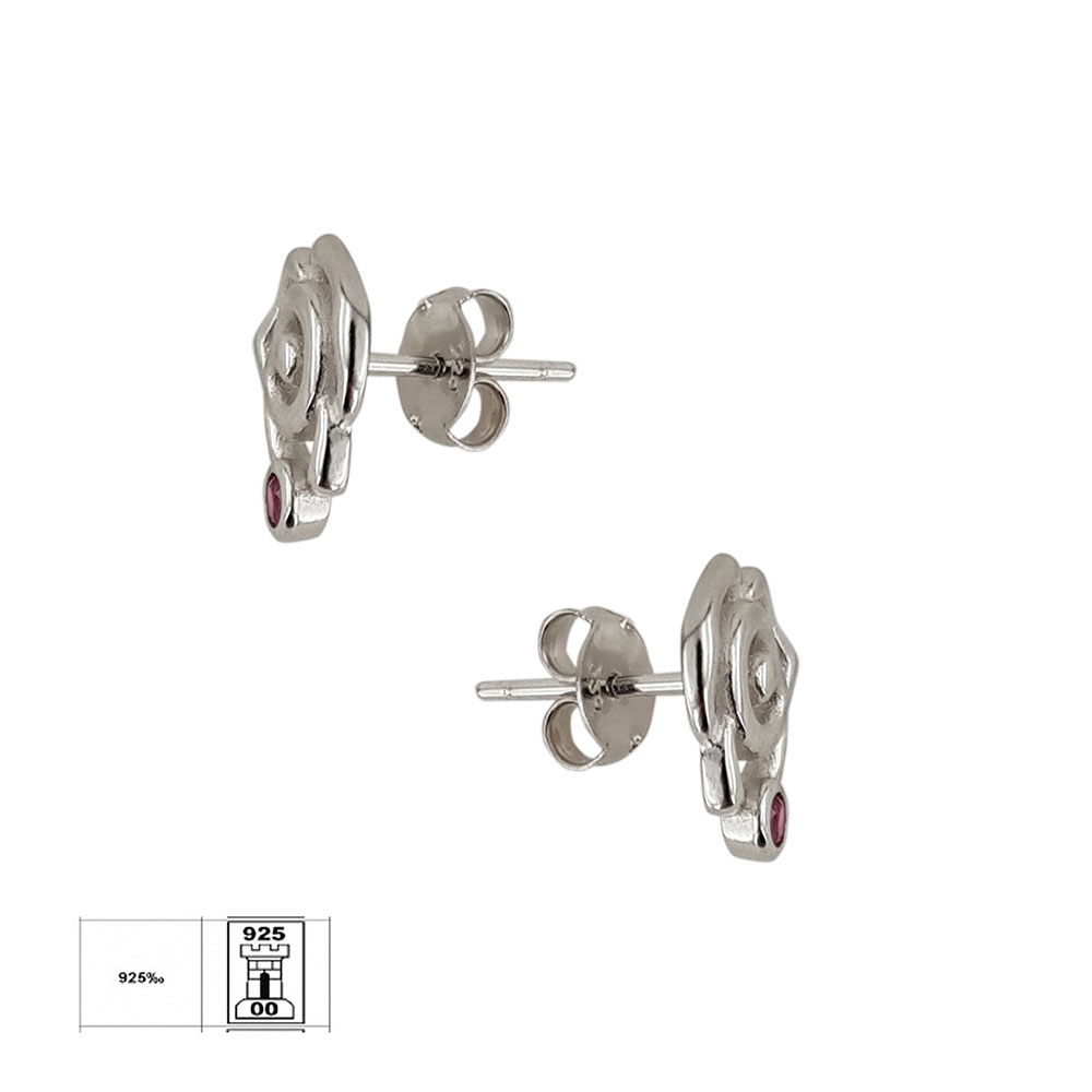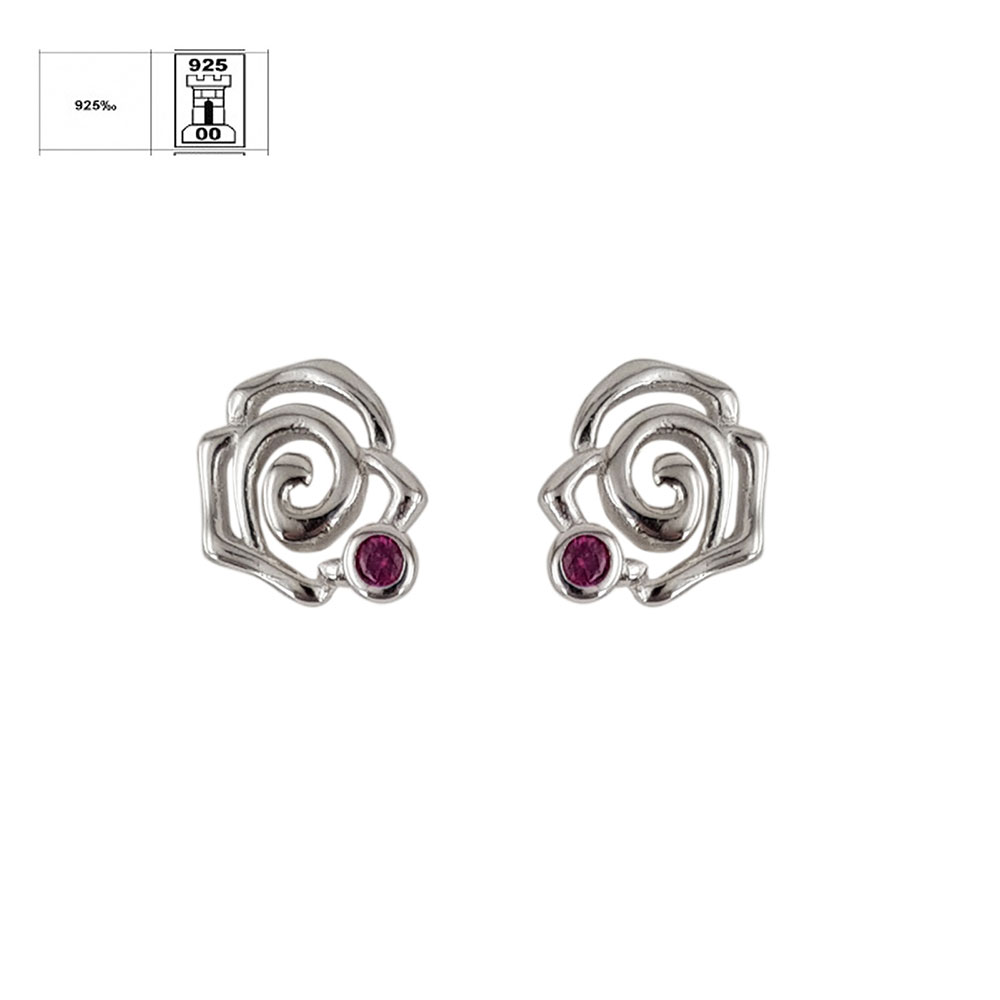 Cercei din argint 925, model floare cu un zirconiu roz. Sistem de inchidere surub.