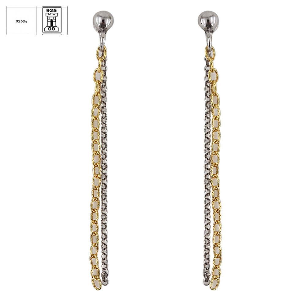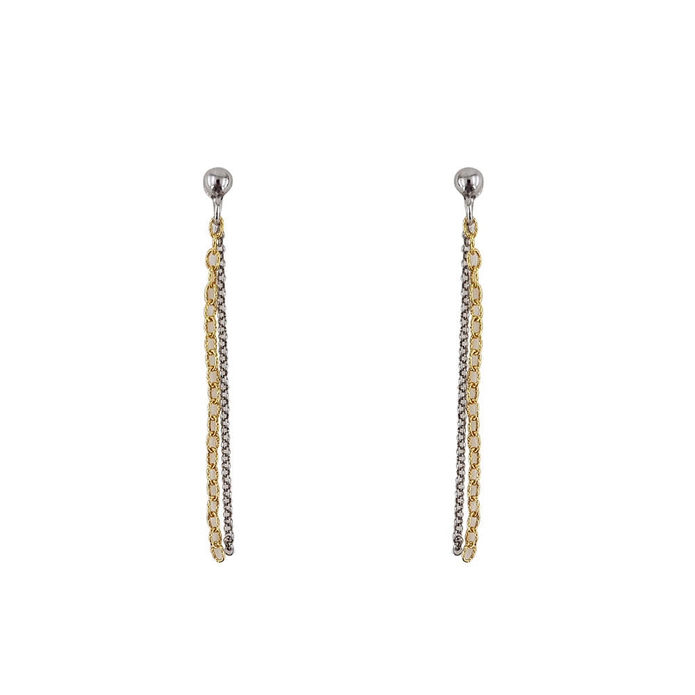 Cerceii prezinta un design captivant cu doua lantisoare de dimensiuni diferite, unul auriu mai gros si unul argintiu mai subtire, care se reflecta subtil la lumina. Astfel, aceste bijuterii pot completa orice stil, de la office la cocktail sau chiar casual.