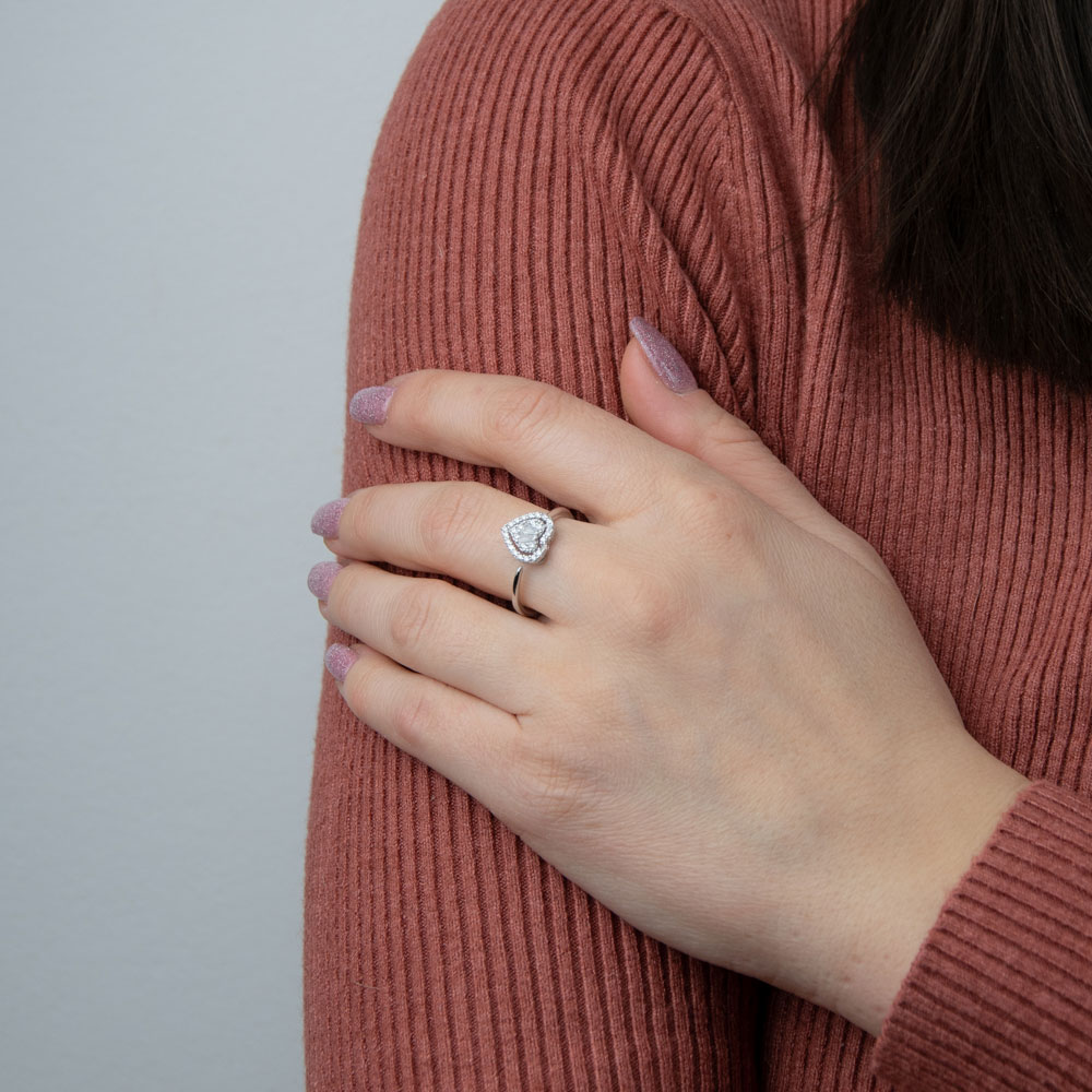 - Inima centrala, simbol al iubirii, este minunat decorata cu zirconii care reflecta lumina splendid.