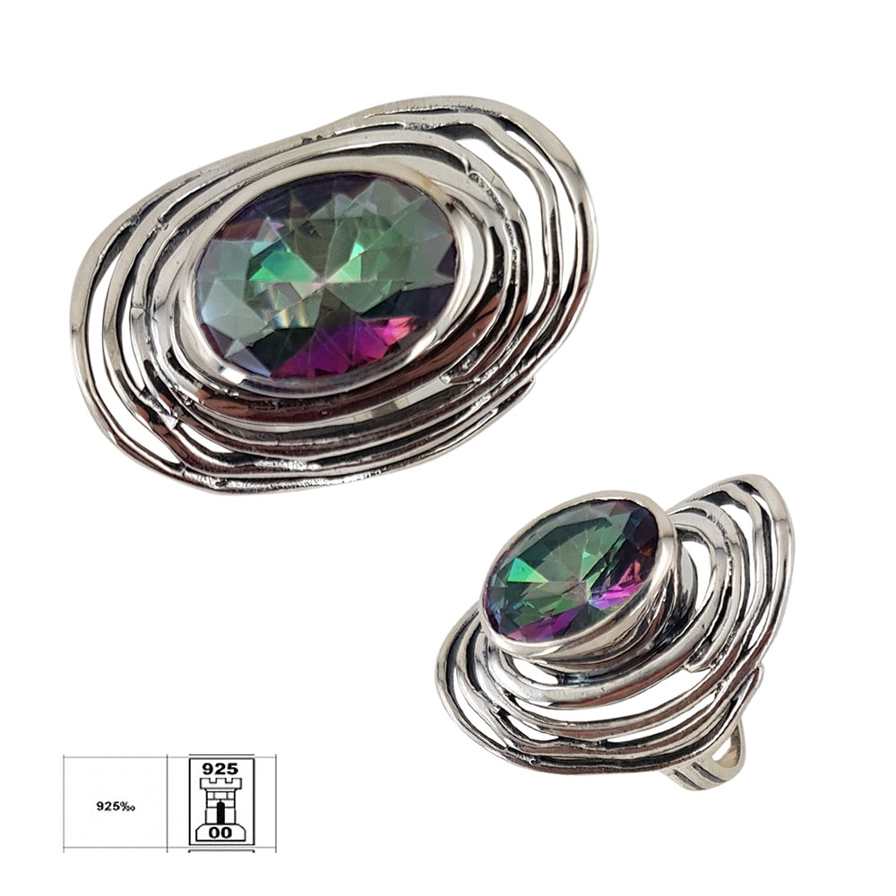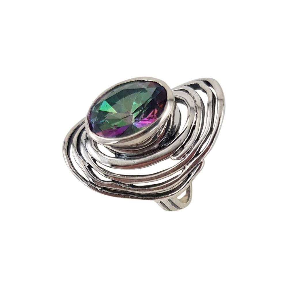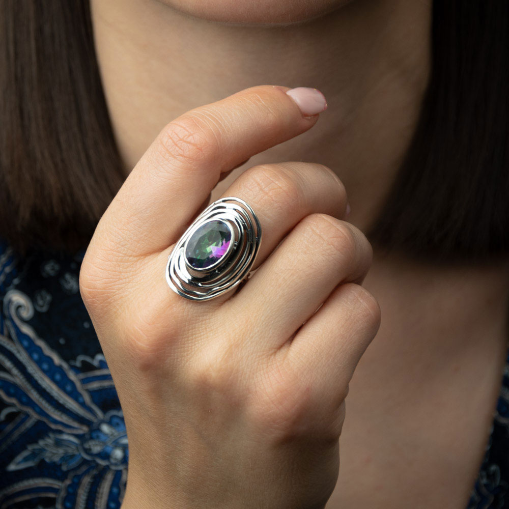 Rasfata-te cu eleganta atemporala a bijuteriilor autentice din argint 925. Alege inelul Blair, o creatie rafinata care imbina perfect materialul de cea mai buna calitate cu magia pietrei cuart mistic. Bijuteria impresioneaza prin design-ul inovativ, cu linii delicate, avand in centru o piatra multicolora deosebita, incrustata intr-o montura ovala unica.