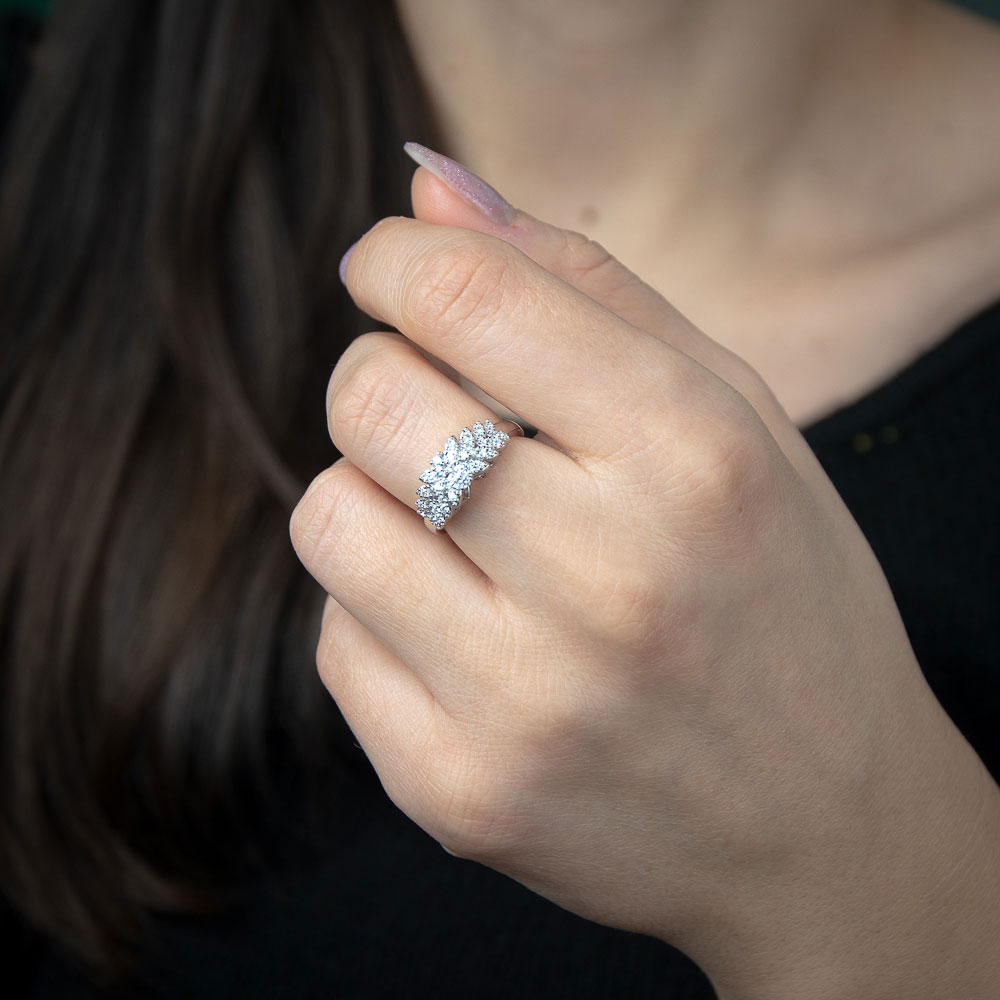 Designul inelului imita delicatetea petalelor unei flori, accentuat de stralucirea zirconiilor albe care imbratiseaza montura, conferind o aura de distinctie si rafinament. Inelul este creat din argint 925, garantand nu numai frumusetea, dar si calitatea si durabilitatea.