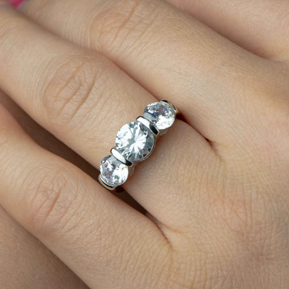 Explorati colectia noastra exclusiva si lasati-va cuceriti de Inelul Argint 925 Amiha, o piesa de bijuterie ce imbina maestria artizanala cu eleganta contemporana. Acest inel este realizat din argint pur 925, recunoscut pentru durabilitatea si stralucirea sa deosebita. Montura de 20 mm x 7 mm este decorata cu trei zirconii albe fatetate, o piatra mare in centru, flancata de doua mai mici, care adauga un plus de stralucire si sofisticare.
