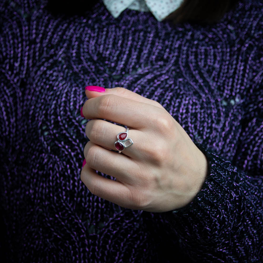 Explorati lumea rafinata a bijuteriilor cu inelul Thia din argint 925, o creatie care imbina cu maestrie eleganta si stilul contemporan. Inelul este decorat cu trei zirconii captivante, fiecare in nuante diferite de roz si rosu, oferind o paleta de culoare vibranta si atragatoare. Designul distinctiv si culorile inedite il fac perfect pentru a fi purtat atat la evenimente speciale, cat si in viata de zi cu zi.