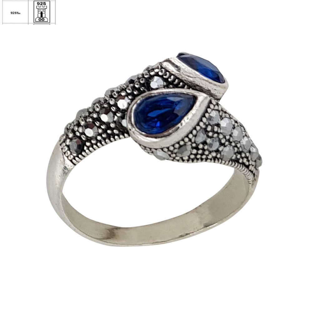 Acest inel din argint 925 este o piesa de bijuterie cu adevarat speciala, adresata femeilor care apreciaza eleganta subtila si detaliile fine. Realizat cu o maiestrie deosebita, inelul Duo Blue impresioneaza prin designul sau inspirat din formele sinuoase ale unui sarpe, simbol al transformarii si al rafinamentului atemporal.
