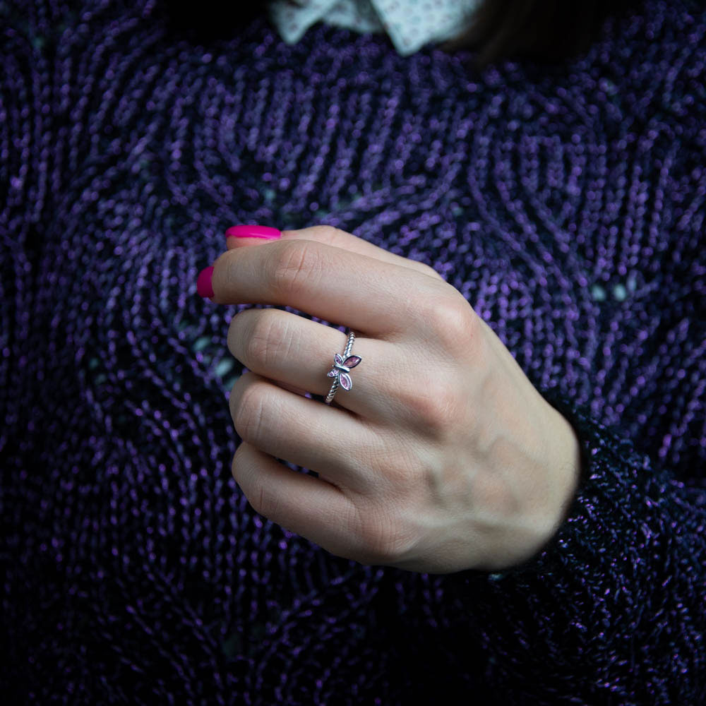 Exprima-ti stilul unic cu Inelul Thia din argint 925, accesorizat cu un fluture roz captivant. Perfect pentru a adauga o nota de culoare si eleganta tinutelor tale, acest inel versatil este ideal pentru utilizare zilnica sau pentru ocazii speciale. Fabricat din argint 925, acest inel nu doar ca impresioneaza prin designul sau delicat, dar este si durabil.