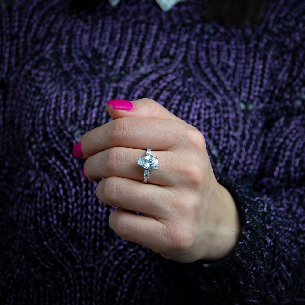 Explorati eleganta atemporala cu Inelul Thia, o piesa maestra din colectia noastra de inele din argint 925. Designul sofisticat, avand o piatra de zirconiu in forma de lacrima centrala, impreuna cu doua zirconii minuscule lateral, face din acest inel alegerea perfecta pentru a adauga un strop de stralucire oricarei tinute.