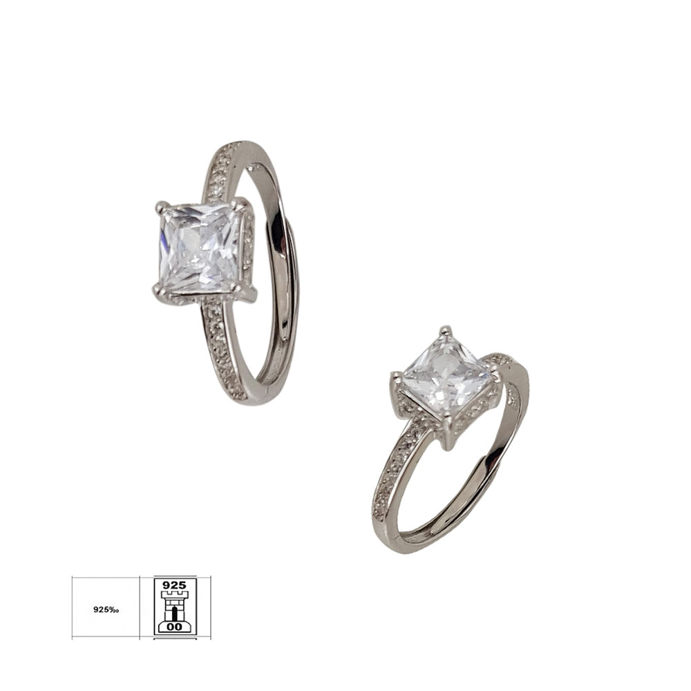- Design Atemporal: Piatra centrala este un zirconiu in forma patrata, pus in evidenta de montura eleganta care reflecta lumina intr-un mod spectaculos. Zirconiile mici incrustate pe marginea monturii adauga un plus de stralucire.