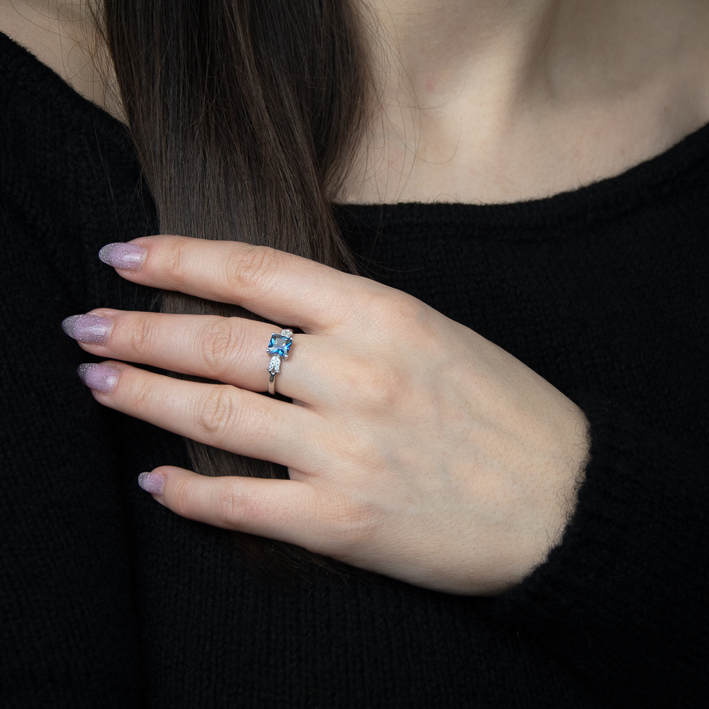 Explorati universul bijuteriilor de lux cu inelul din argint 925 Thia, o piesa de rezistenta pentru orice colectie. Fabricat din argint de cea mai inalta calitate, acest inel prezinta o piatra de topaz mistic cu nuante vibrante de albastru si violet, incapsuland frumusetea si misterul naturii.