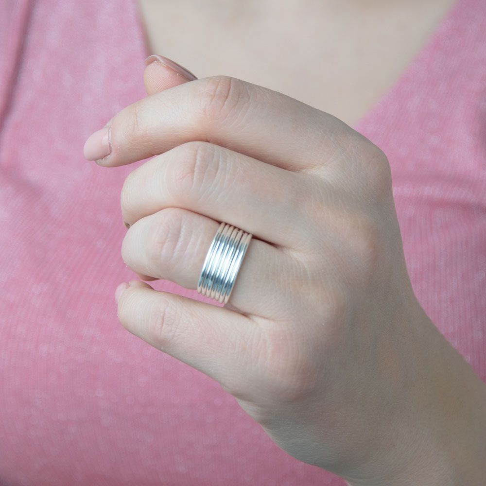 Descopera eleganta subtila si farmecul contemporan al inelului minimalist Oran din argint 925. Creat cu atentie la detalii, acest accesoriu exclusiv se remarca printr-un design inovator si rafinat, format din sapte inele subtiri armonios unite la baza printr-o placuta discreta din argint. Textura delicata a fiecarei benzi contribuie la efectul unic de volum si dinamism, oferindu-ti o bijuterie de neuitat pentru orice ocazie.
