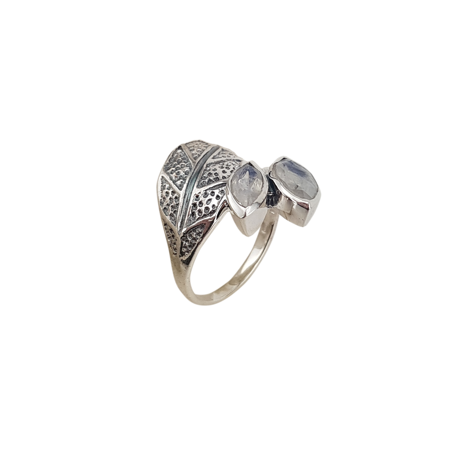 Inel din argint 925, decorat cu piatra lunii. Marime 54 mm - marime SUA 7 (vezi aici ghid marime inel).