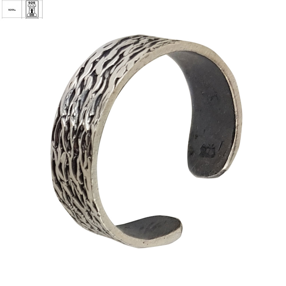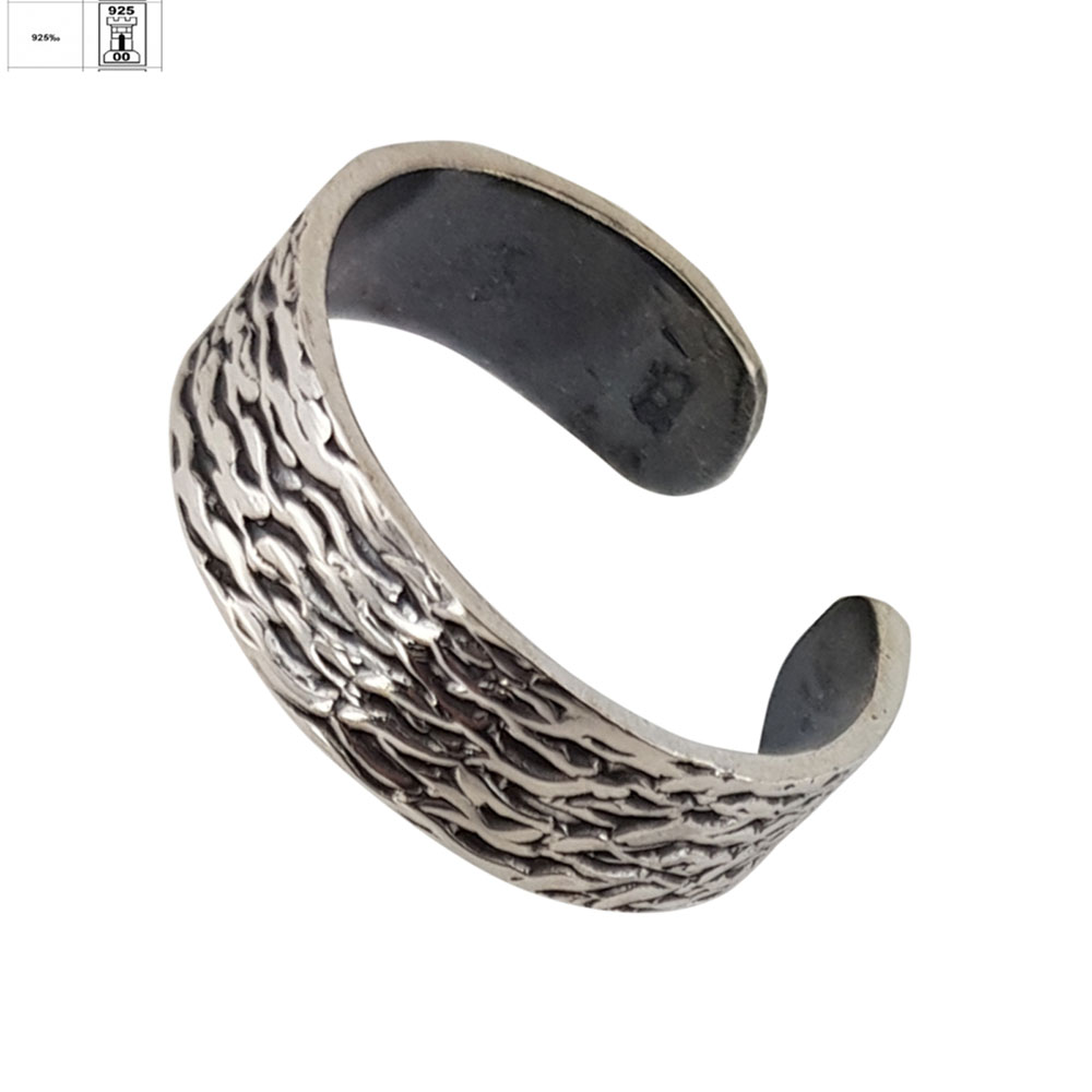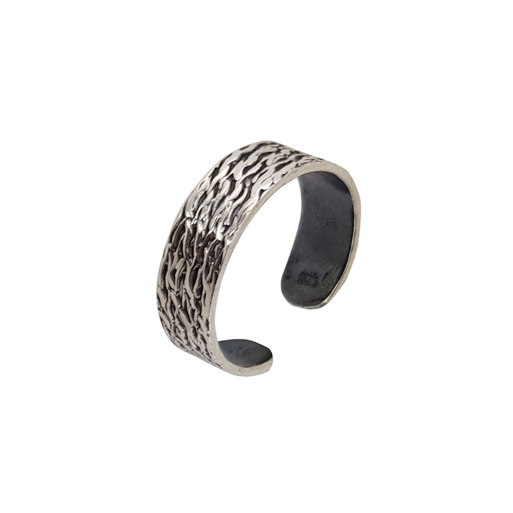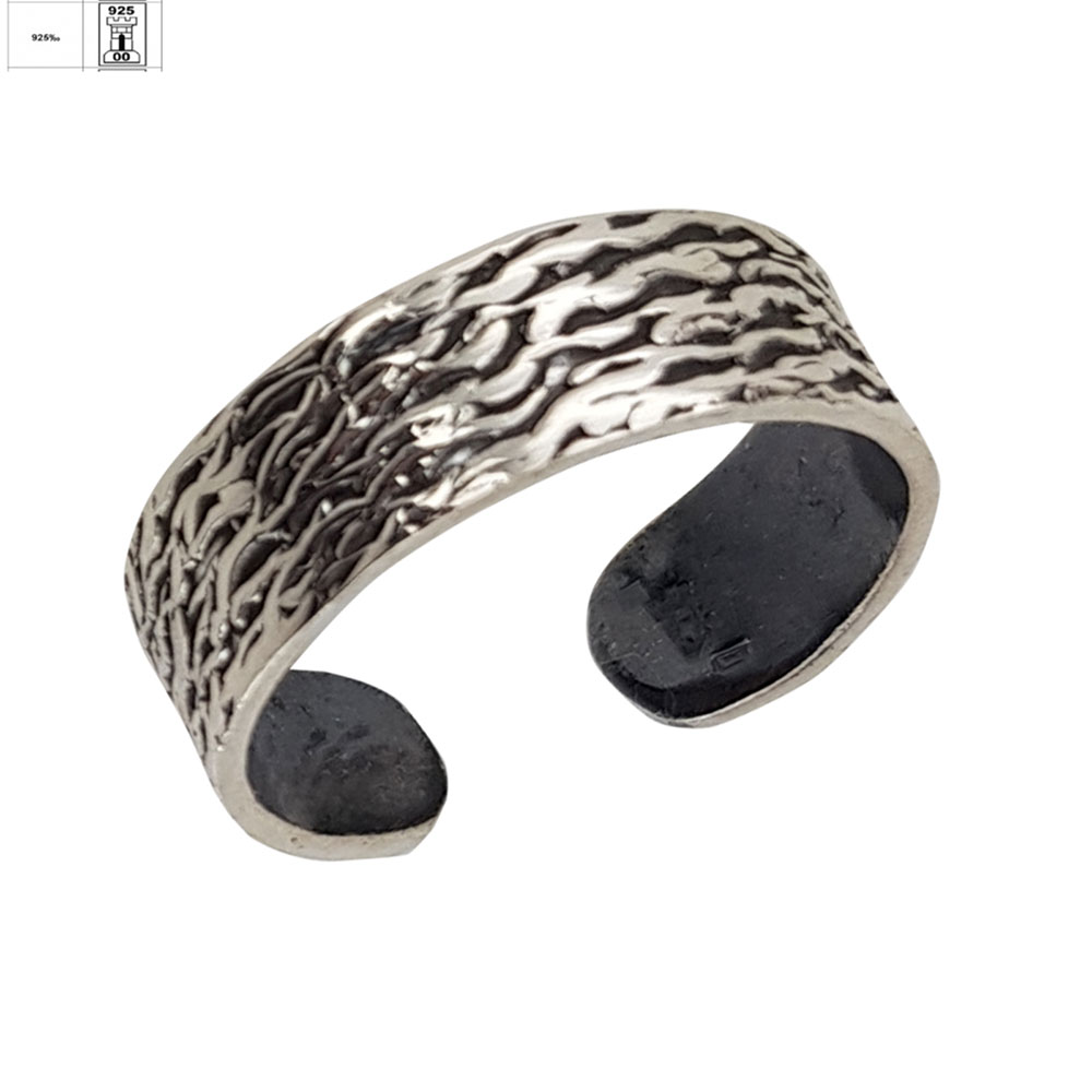 Realizat din argint 925 de calitate superioara si finisat prin tehnica de innegrire, modelul pune in valoare detaliile fine si adauga profunzime vizuala. Suprafata texturata, cu striatii organice, creeaza un joc subtil de lumina si umbra, conferind inelului un aspect unic si versatil, potrivit atat pentru tinutele de zi cu zi, cat si pentru ocazii speciale.