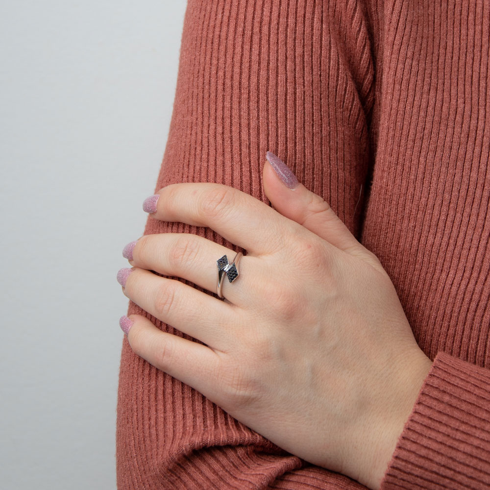 Explorati frumusetea sofisticata a inelului din argint 925 reglabil, care imbina perfect stilul modern cu eleganta clasica. Inelul Kala se remarca prin design-ul sau unic cu un romb decorat cu zirconii negre, oferind o nota de rafinament oricarei tinute.