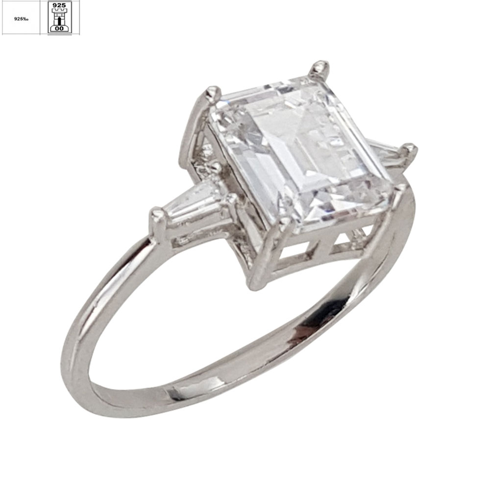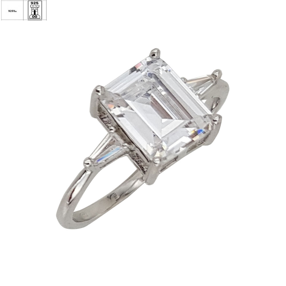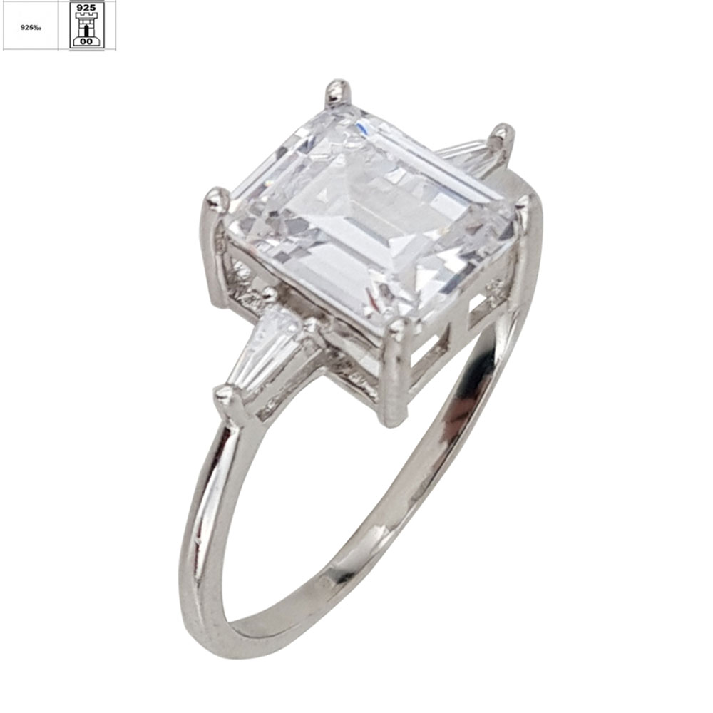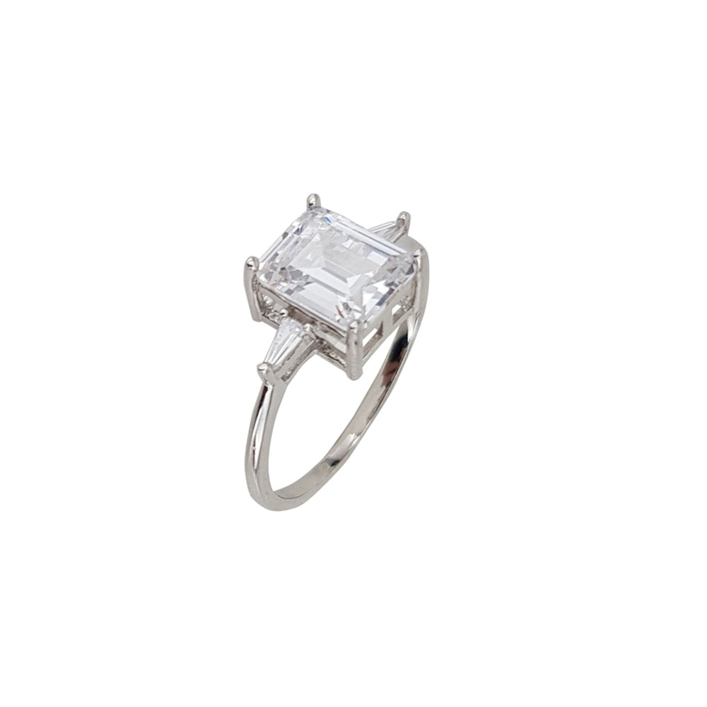 Exprima-ti stilul si rafinamentul cu inelul de logodna din argint 925 Thia, o piesa eleganta care imbina armonios designul clasic cu stralucirea contemporana. Creat din argint 925, acest inel impresioneaza prin montura sa sofisticata, ce evidentiaza un zirconiu dreptunghiular central, flancat de doua pietre laterale, pentru un efect vizual spectaculos.