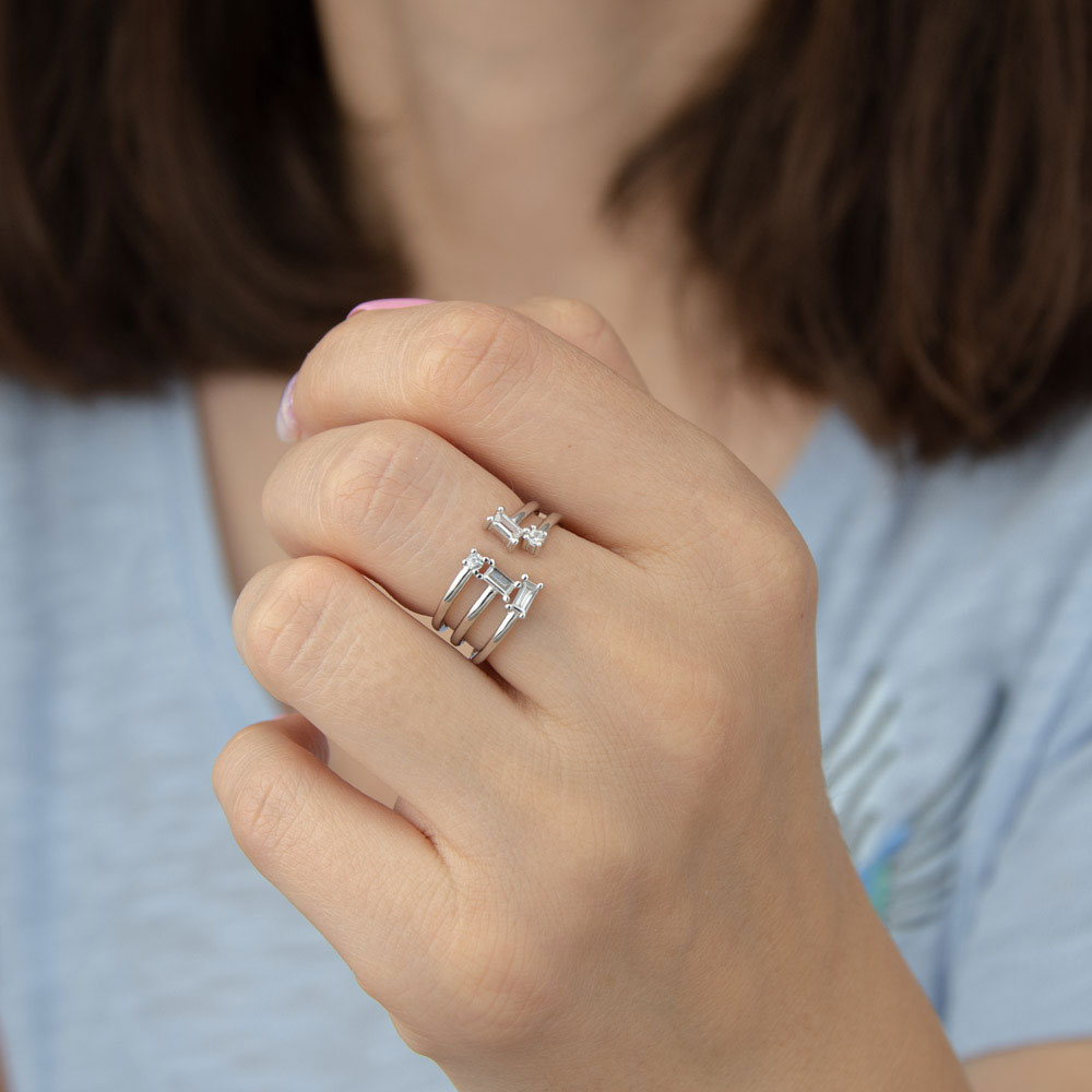 Designul contemporan caracterizat de linii curate si montura impresionanta de 11 mm lungime si 10 mm latime face din acest inel piesa centrala a oricarei colectii de bijuterii. Reglabilitatea sa permite purtatoarei sa ajusteze inelul pentru confort maxim, iar gramajul de 3.26 gr asigura o purtare usoara si confortabila pe tot parcursul zilei.