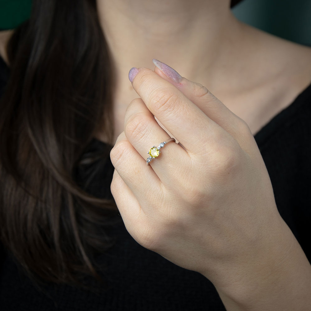 Descopera farmecul si rafinamentul cu inelul de argint 925 Thia, o piesa centrala in colectia noastra de bijuterii. Acest inel elegant este caracterizat printr-o piatra de zirconiu in nuante vibrante de galben, care adauga un plus de stralucire si culoare tinutei tale.