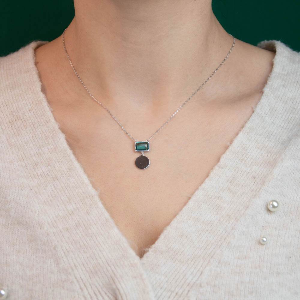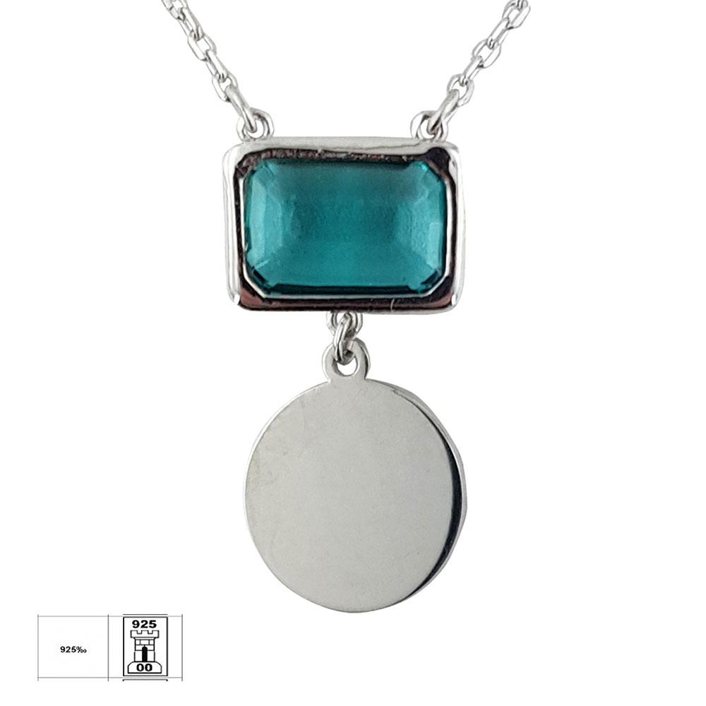Lantul este realizat din argint 925 certificat, respectand integral legislatia in vigoare privind metalele pretioase. Crystalul verde marin adauga o nota distincta, stralucitoare, bijuteriei, iar pandantivul cu banut personalizeaza elegant accesoriul. Cu o lungime de 420 mm si latime delicata de 0.6 mm, este usor de purtat si adaptat stilului tau personal.