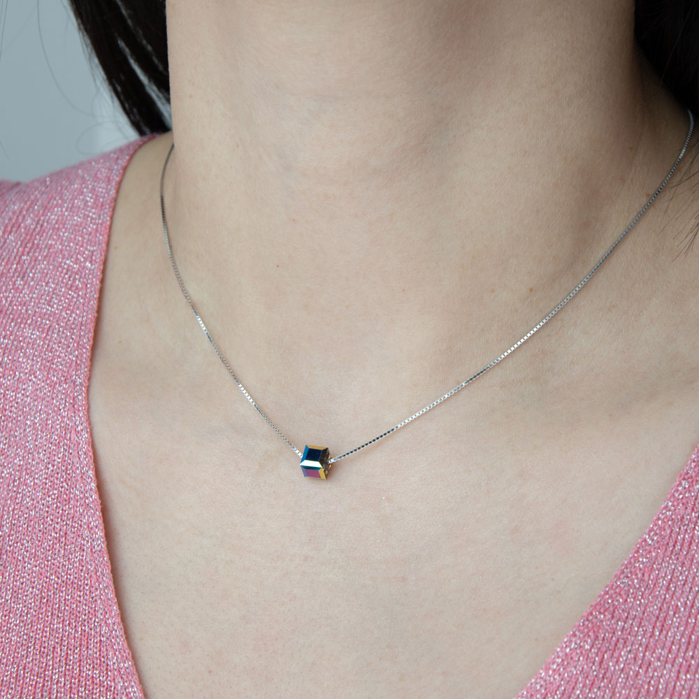 - Pandantivul cu cristal cubic multicolor capteaza lumina din toate unghiurile, creand un efect vizual spectaculos ce nu va trece neobservat.