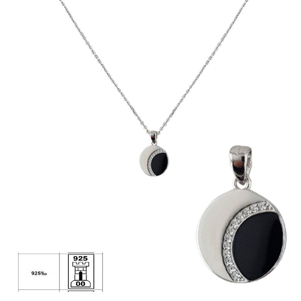 Explorati colectia noastra exclusiva de lanturi din argint 925, un amestec perfect de eleganta si rafinament. Acest Lant argint cu pandantiv, decorat cu email negru si zirconii albe, reprezinta alegerea ideala pentru doamnele si domnisoarele care isi doresc sa adauge o nota de sofisticare tinutei lor. Lungimea de 45 cm il face versatil, potrivit atat pentru utilizarea zilnica, cat si pentru ocazii speciale.