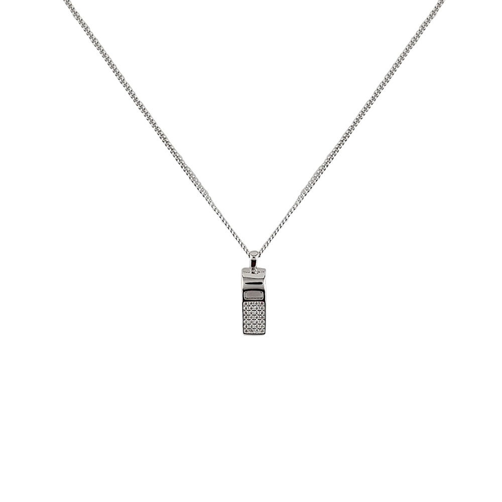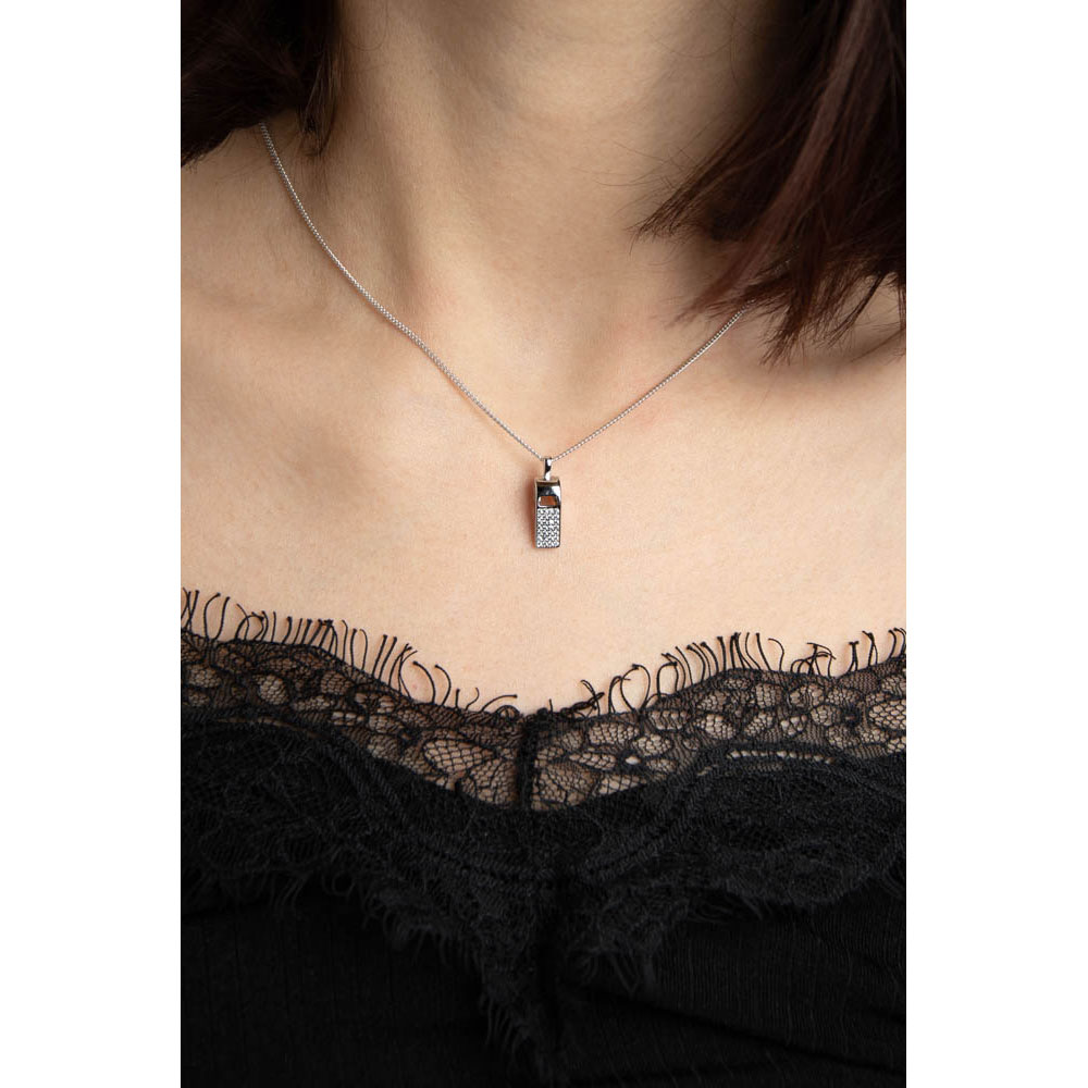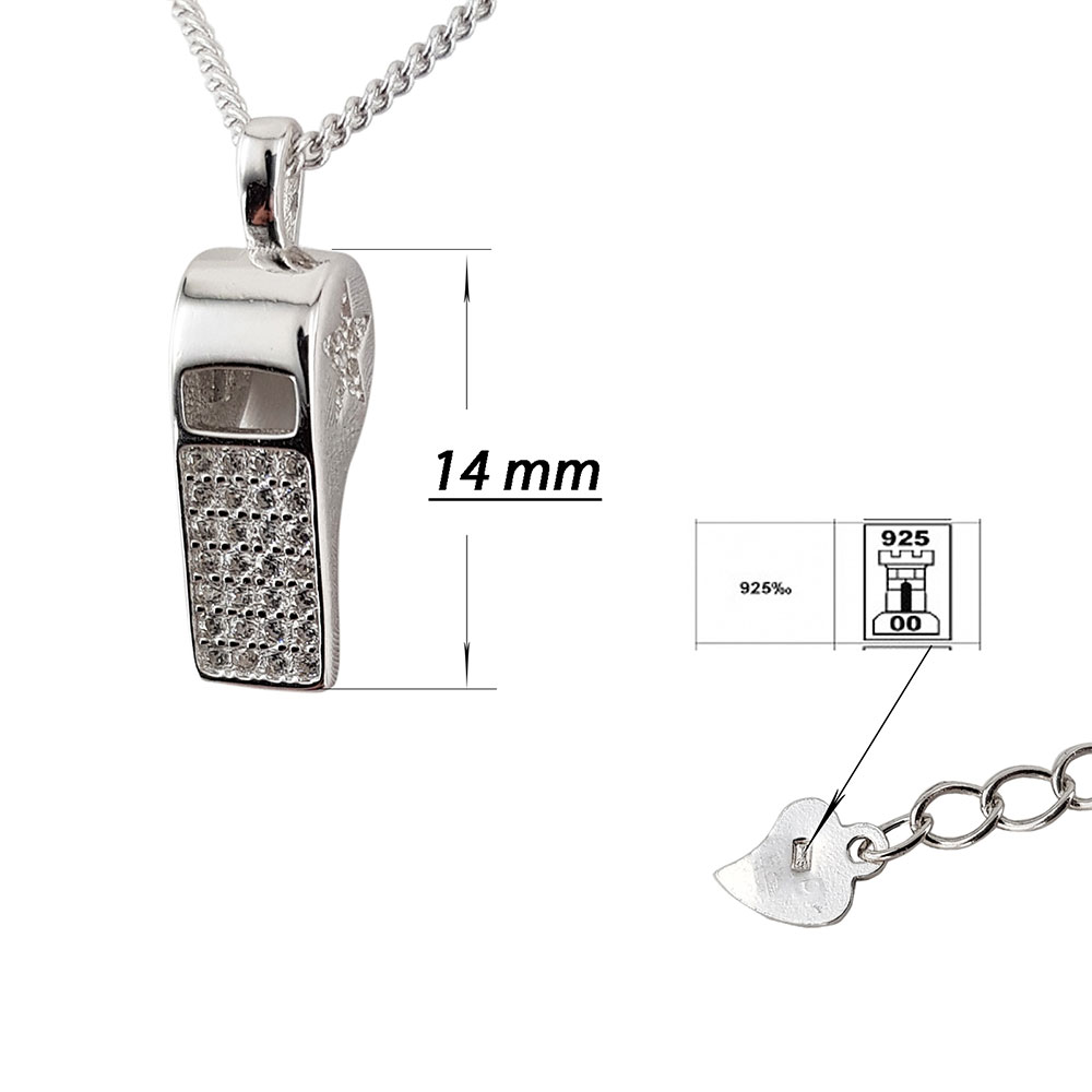 Lantul din argint 925 cu pandantiv in forma de fluier, incrustat cu zirconii albe, reprezinta combinatia perfecta intre eleganta si simplitate. Creat pentru a aduce un plus de rafinament oricarei tinute, acest lant se adapteaza perfect nevoilor celor care cauta bijuterii fine, dar impresionante.
