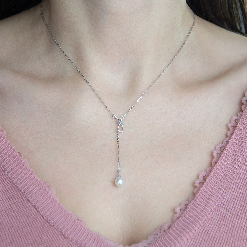 - Lantul este decorat cu o perla alba, simbolul puritatii si elegantei, adaugand o nota de distincție oricarei aparitii.