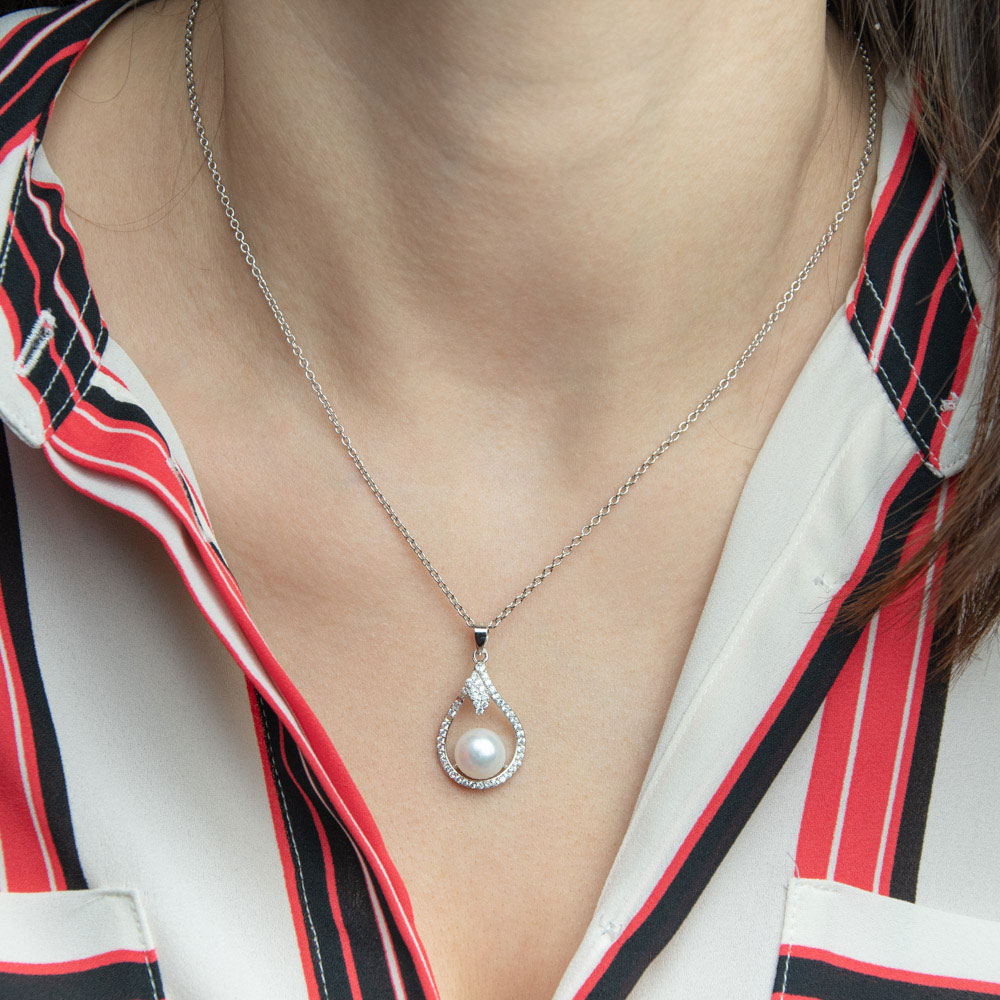 - Pandantiv cu design unic: Decorat cu o perla de cultura, incadrata de zirconii albe, pandantivul adauga un plus de eleganta oricarei tinute.