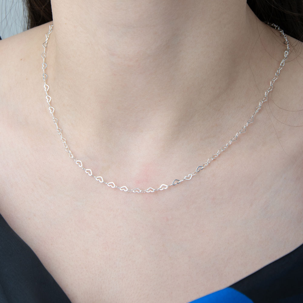 Delicatetea zalelor in forma de inima este subliniata de conexiunile perfecte intre ele, creand o piesa continua care reflecta lumina cu fiecare miscare, adaugand un plus de stralucire tinutelor de zi cu zi sau celor de ocazie. Cu o lungime de 45 cm, acest lant este versatil si se potriveste oricarei dimensiuni, oferind confort si un aspect sofisticat la purtare.