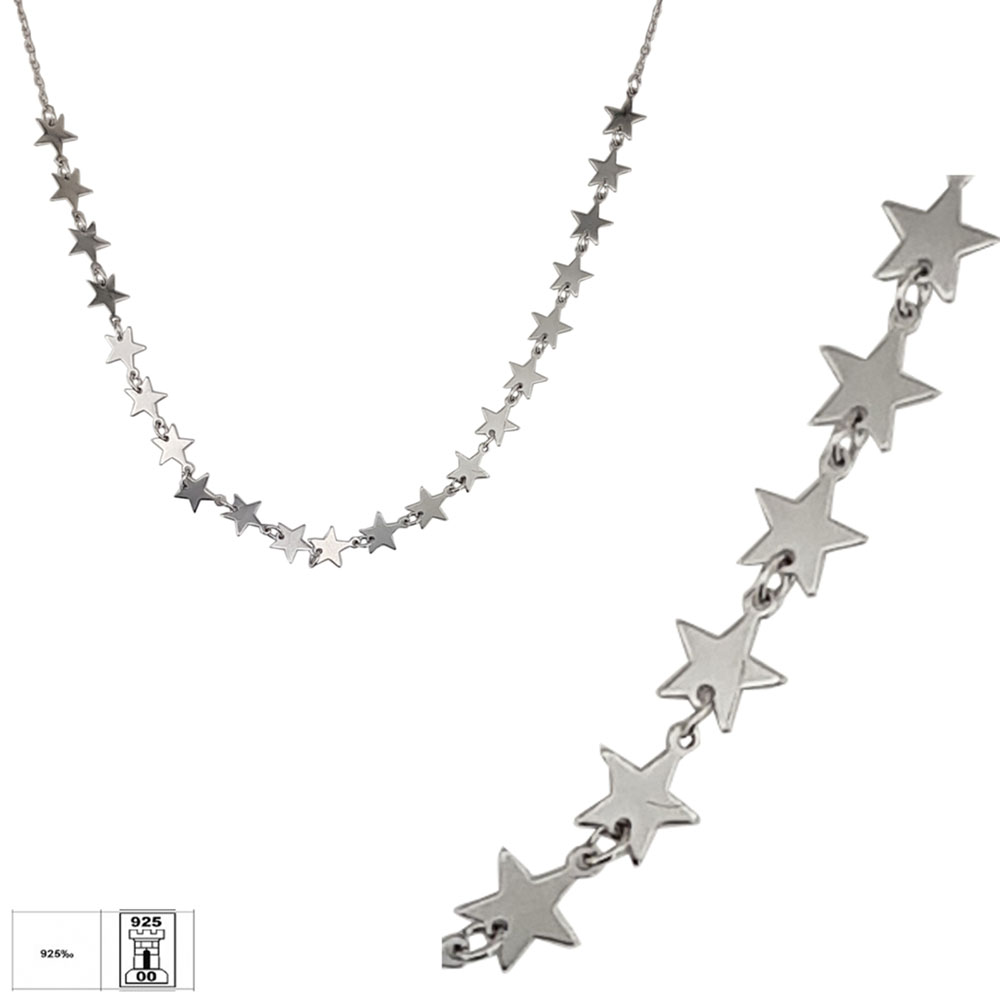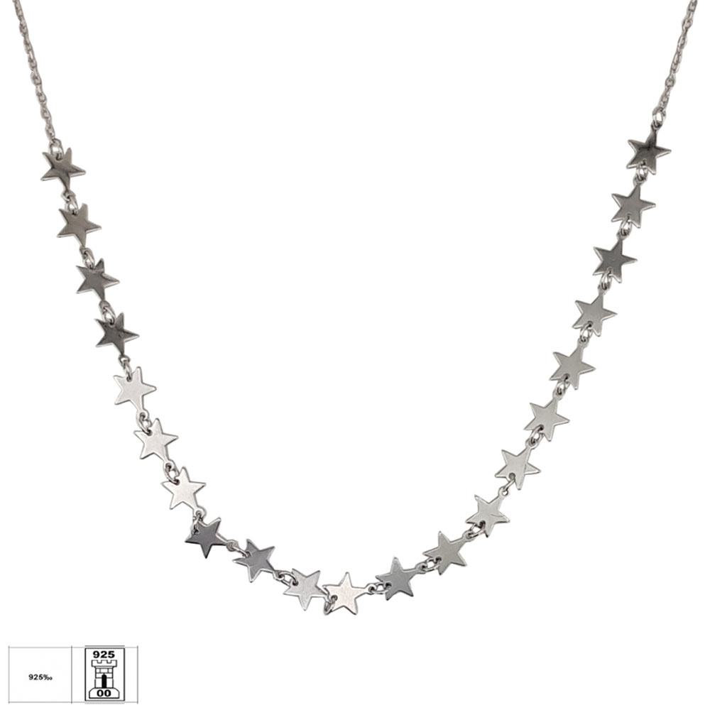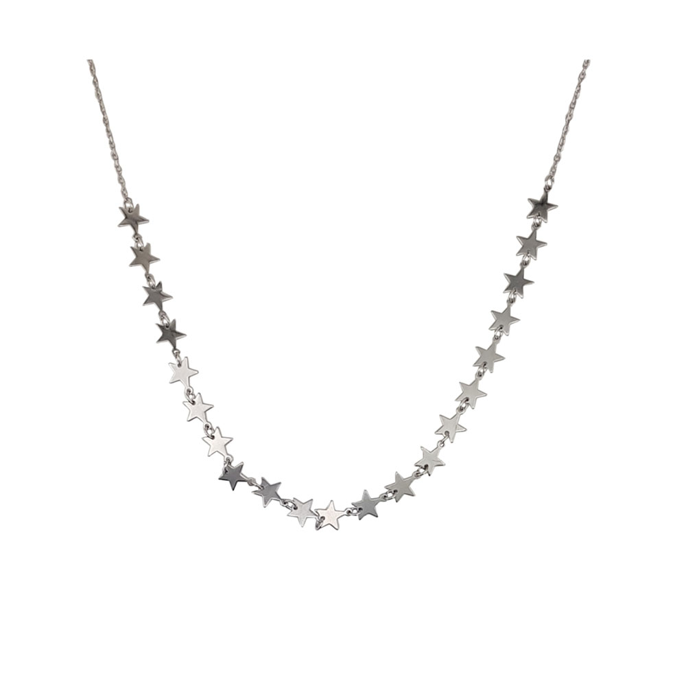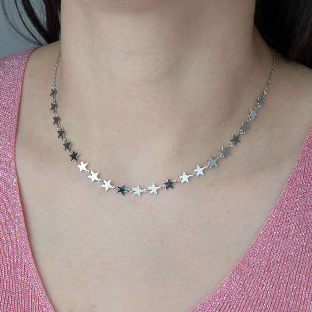 Alege eleganta subtila cu acest lant din argint 925 la baza gatului, decorat delicat cu 21 de stelute armonios imbinate. Aceasta bijuterie rafinata este alegerea perfecta pentru femeile care doresc sa evidentieze discret eleganta si rafinamentul unei tinute casual sau pentru a completa impecabil outfit-ul pentru ocazii speciale.