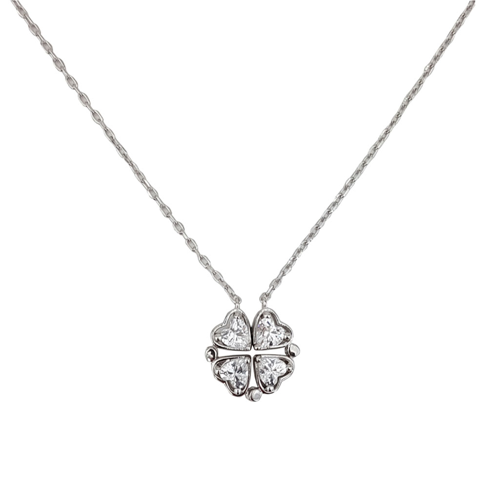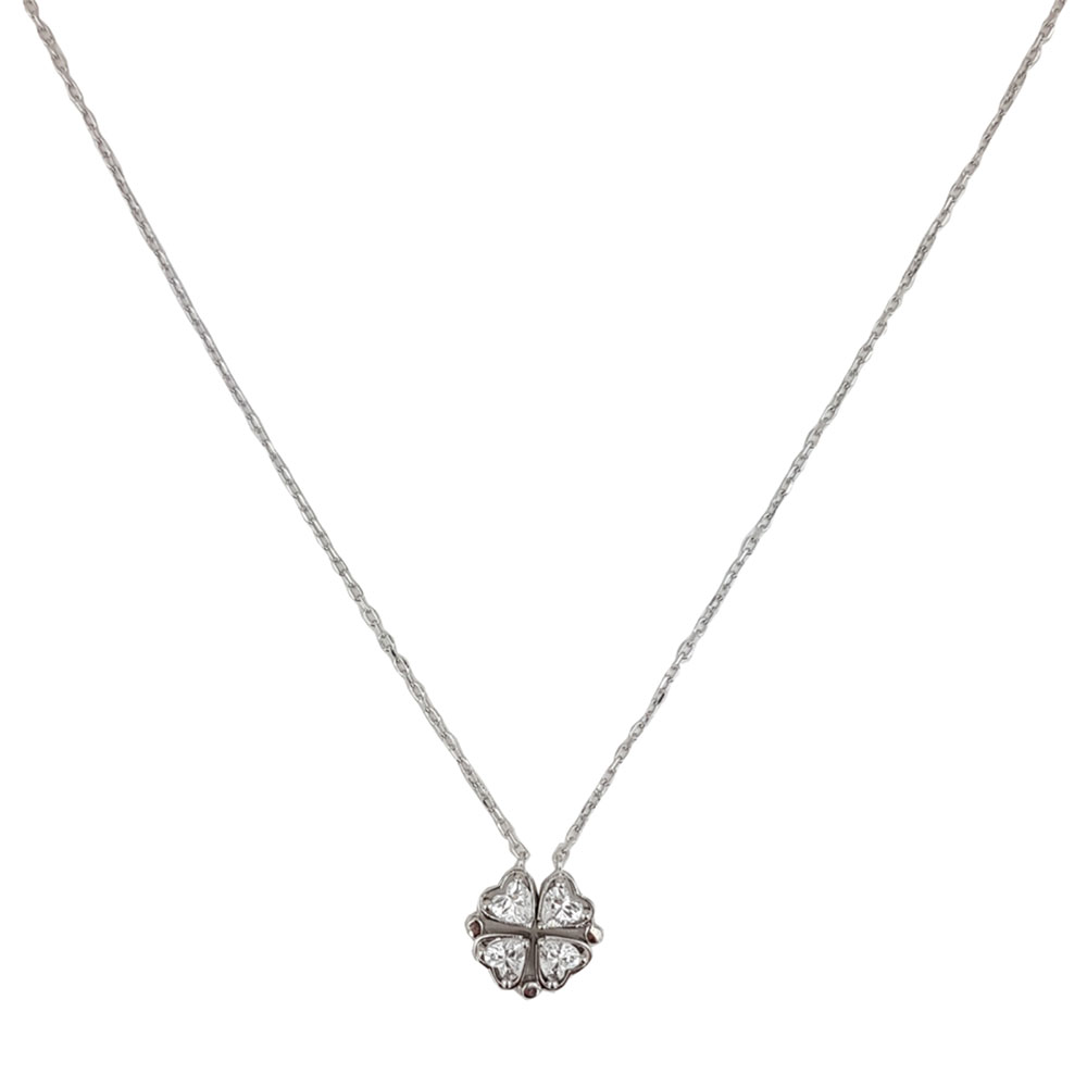 Exprima-ti stilul si emotia cu lantul din argint 925 Lucky, o bijuterie cu design reversibil ce imbina simboluri puternice – trifoiul norocos si inima. Realizat cu atentie la detalii, acest colier se remarca printr-un pandantiv dublu-fata cu magnet, decorat cu zirconii albe ce adauga o stralucire subtila si rafinata.