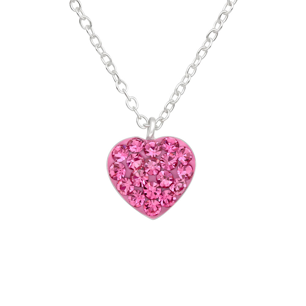 Lant pentru copii din argint 925 cu pandantiv inima plina decorata cu zirconii roz. Lungime lant 39 cm, cu o za ce ofera posibilitatea de a fi micsorat cu 3 cm.