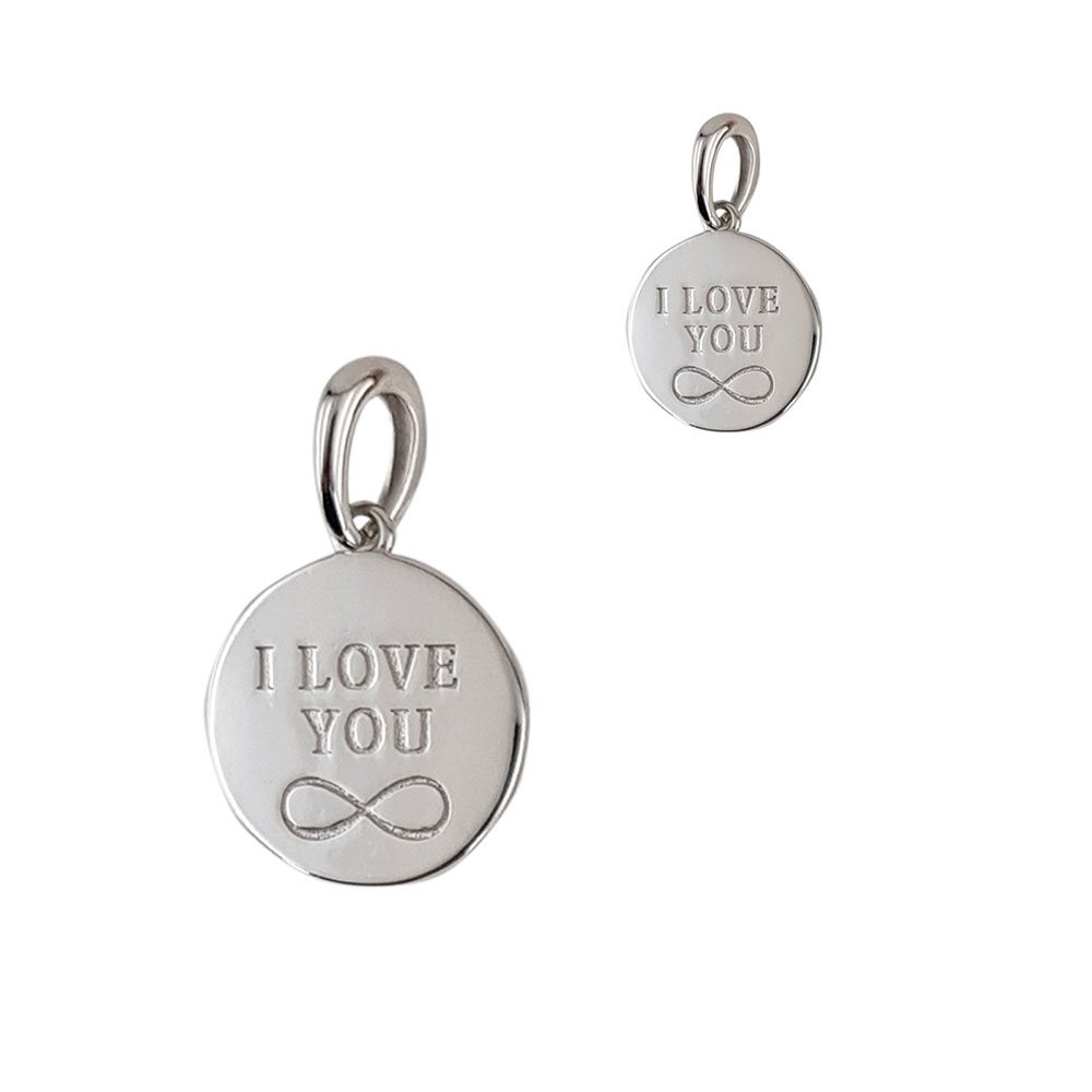 - Design: Rotund, gravat cu mesajul I LOVE YOU si simbolul infinitului