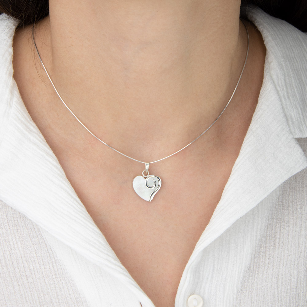 Explorati lumea elegantei cu Pandantivul din argint 925 Thia Silver inima cu sidef, o piesa de bijuterie ce imbina finetea sidefului cu stralucirea argintului. Acest pandantiv delicat, in forma de inima, este accesorizat cu un ornament artistic din argint, adaugand un plus de rafinament oricarei tinute.