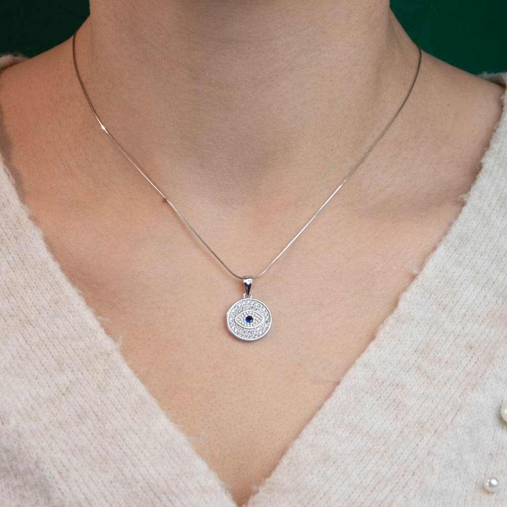 Adaugati un simbol stralucitor de noroc si protectie la colectia dvs. de bijuterii cu Pandantivul Nazar din Argint 925. Acest pandantiv, cu un design captivant ce include zirconii si un punct focal de culoare bleumarin, este mai mult decat un accesoriu; este un talisman. Potrivit pentru orice ocazie, de la intalniri formale la iesiri casual, acest pandantiv adauga o nota de mister si eleganta.