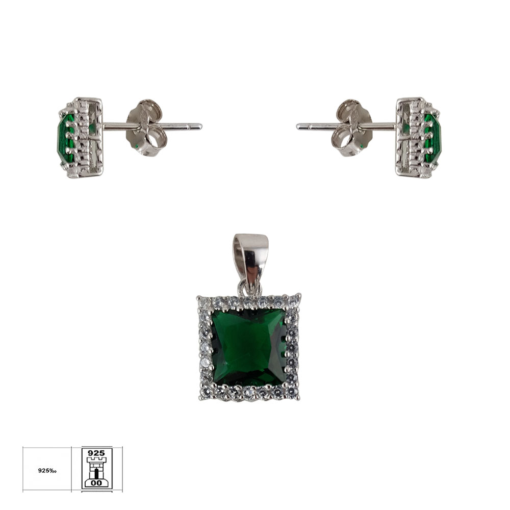 Intampina orice ocazie cu eleganta si rafinament alegand Setul de bijuterii Charo de la Rankine. Creat cu o atentie deosebita la detalii, acest set este compus din cercei si pandantiv din argint 925, fiecare piesa accentuata de un zirconiu verde vibrant in forma patrata, inconjurat de zirconii albe stralucitoare.