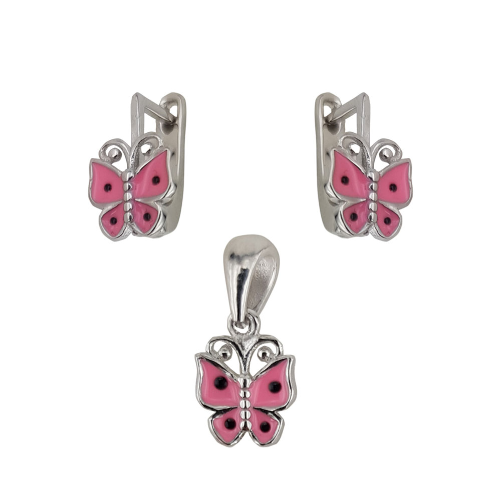 Adauga un strop de culoare si eleganta in garderoba copilului tau cu setul de cercei si pandantiv fluturas din argint 925. Aceste bijuterii delicate sunt ideale pentru a exprima stilul unic si sofisticat, chiar si in cele mai fragede varste.