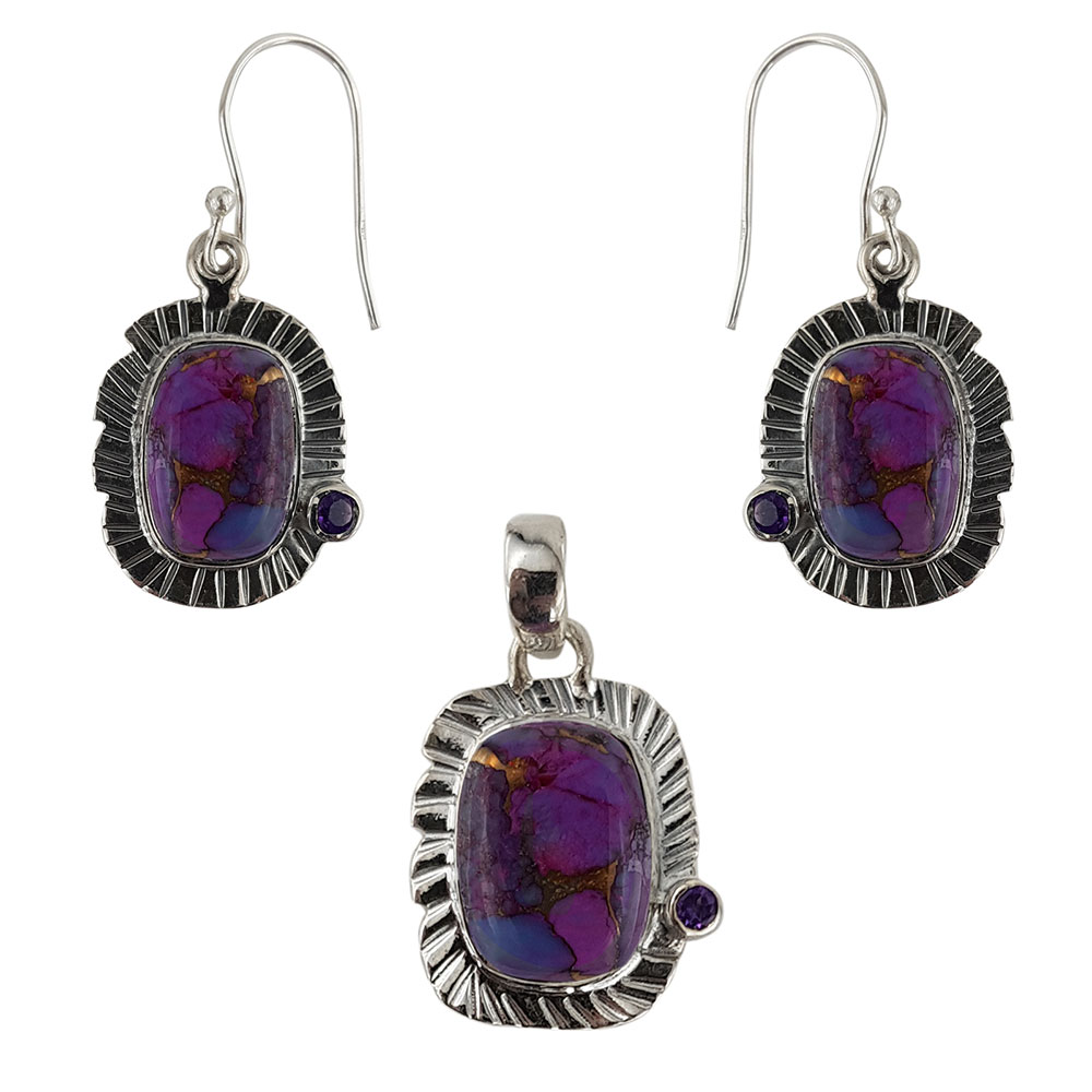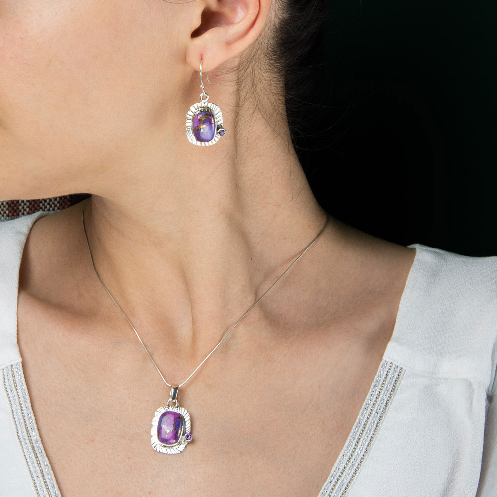 Redescopera eleganta clasica cu Setul Argint cu Turcoaz Purpuriu Natalie, o selectie exclusiva pentru femeile care apreciaza bijuteriile fine si rafinate. Acest set splendid, compus din cercei si pandantiv, este creat din argint 925 de cea mai inalta calitate, asigurand nu doar frumusete, dar si durabilitate.
