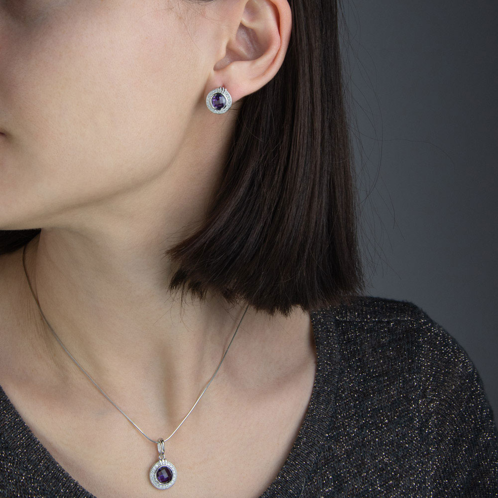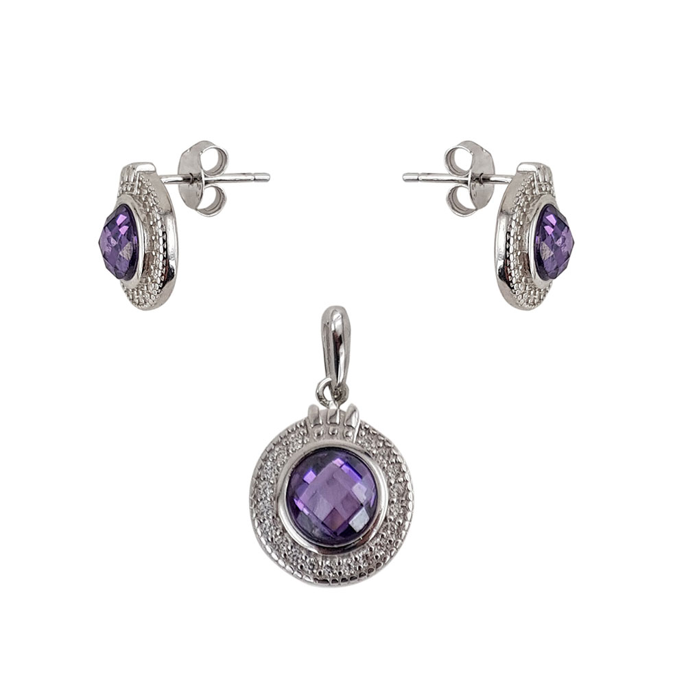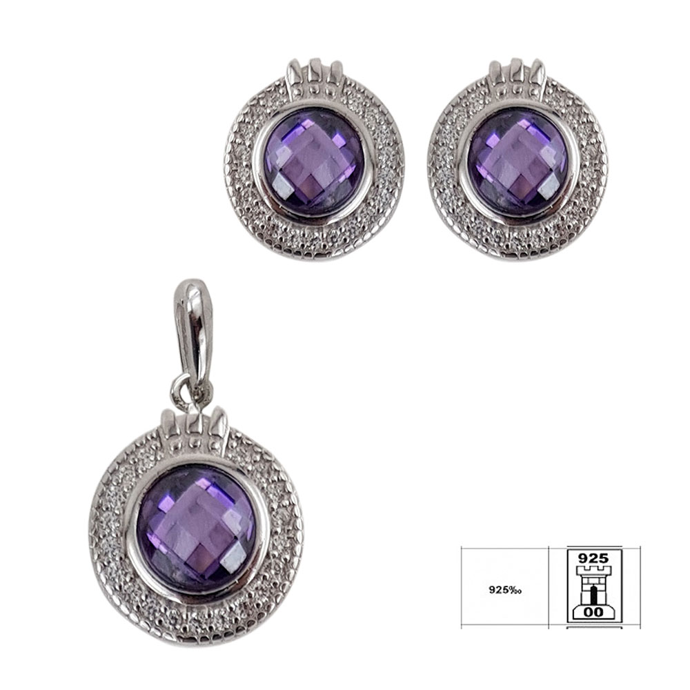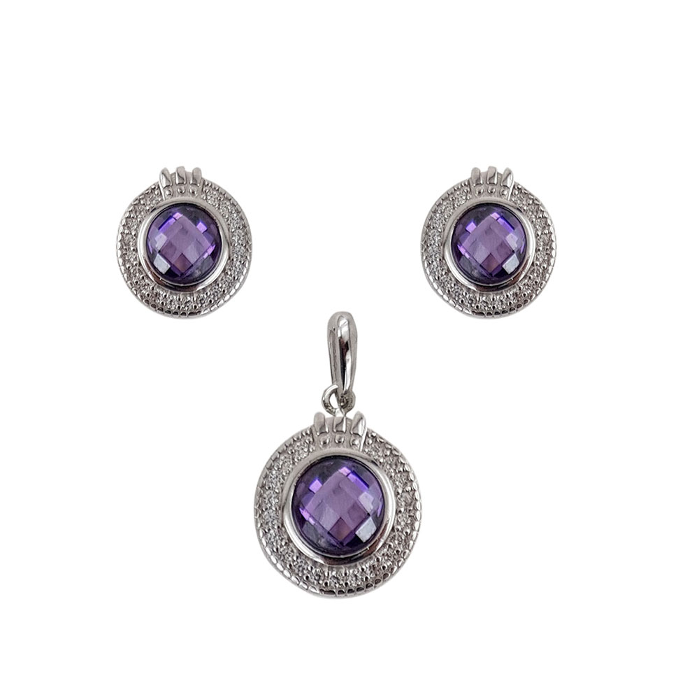 Descoperiti frumusetea si eleganta atemporala a setului nostru Misha din argint 925, perfect pentru femeia moderna si sofisticata. Acest set exclusivist include cercei si un pandantiv, fiecare piesa fiind meticulos decorata cu un zirconiu mov central, inconjurat de stralucitoare zirconii albe. Cu un sistem de inchidere sigur pe surub, setul Misha asigura confortul pe tot parcursul purtarii.