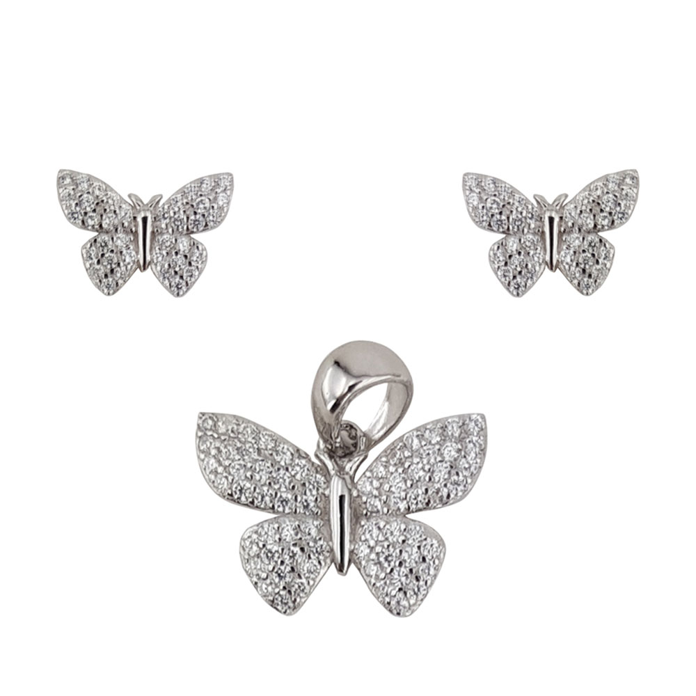 Setul Felys din argint 925 este alegerea perfecta pentru femeile care apreciaza eleganta subtila si detaliile rafinate. Alcatuit din cercei si pandantiv, acest set impresioneaza prin designul delicat in forma de fluturi, simbol al feminitatii si transformarii.