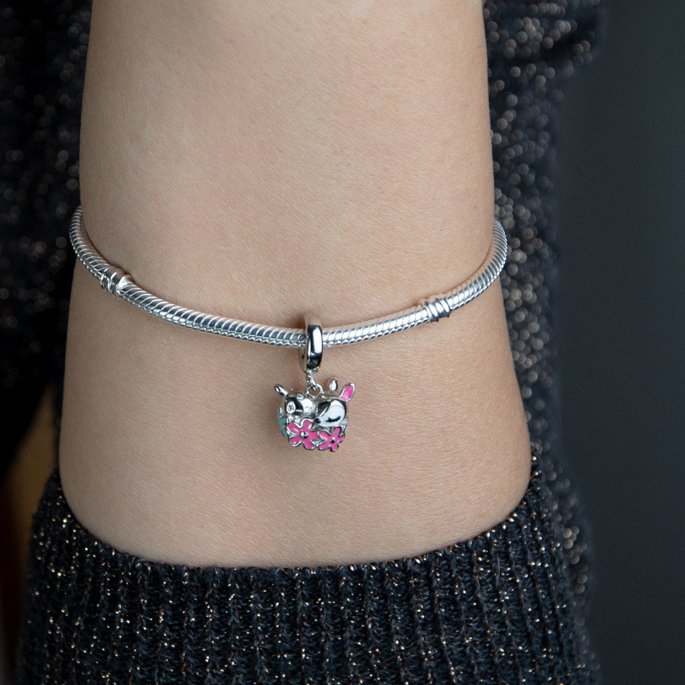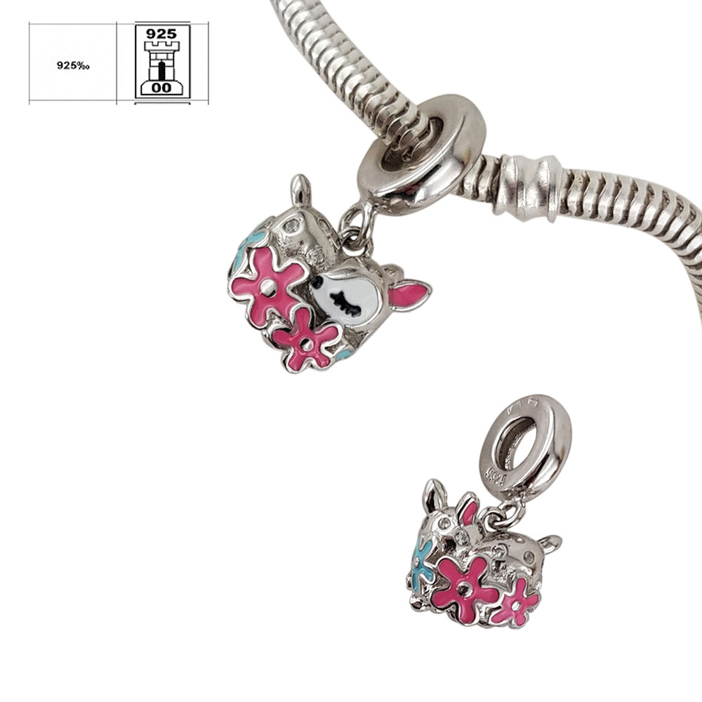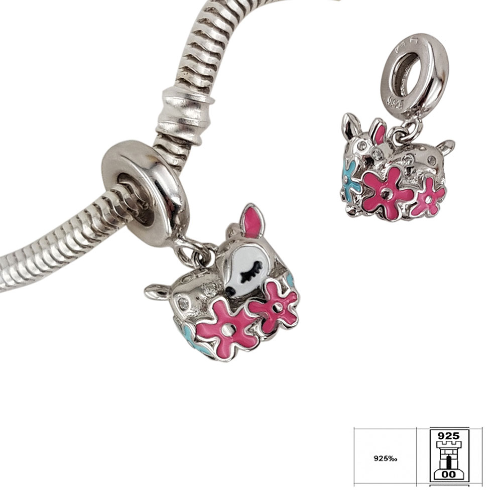 Descopera universul bijuteriilor de exceptie cu talismanul nostru din argint 925, reprezentand o caprioara decorata cu flori, realizat impecabil pentru a aduce un strop de culoare si eleganta oricarei bratari de tip charm. Fiecare detaliu este finisat manual, iar aplicatiile de email si zirconii aduc un plus de stralucire acestui accesoriu unic.