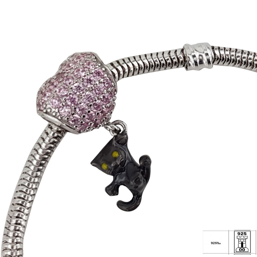 Descopera lumea magica a bijuteriilor din argint 925 cu Talismanul Inima si Pisicuta de la Rankine. Aceasta bijuterie unica, realizata din argint 925 simbolizeaza iubirea neconditionata si joaca inocenta. Inima, stralucitoare datorita zirconiilor roz, este perfect complementata de o figurina detaliata a unei pisici, realizata cu maestrie din email.