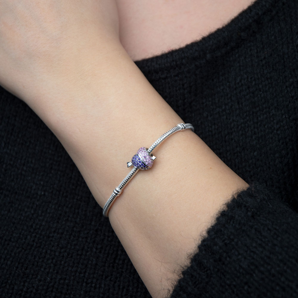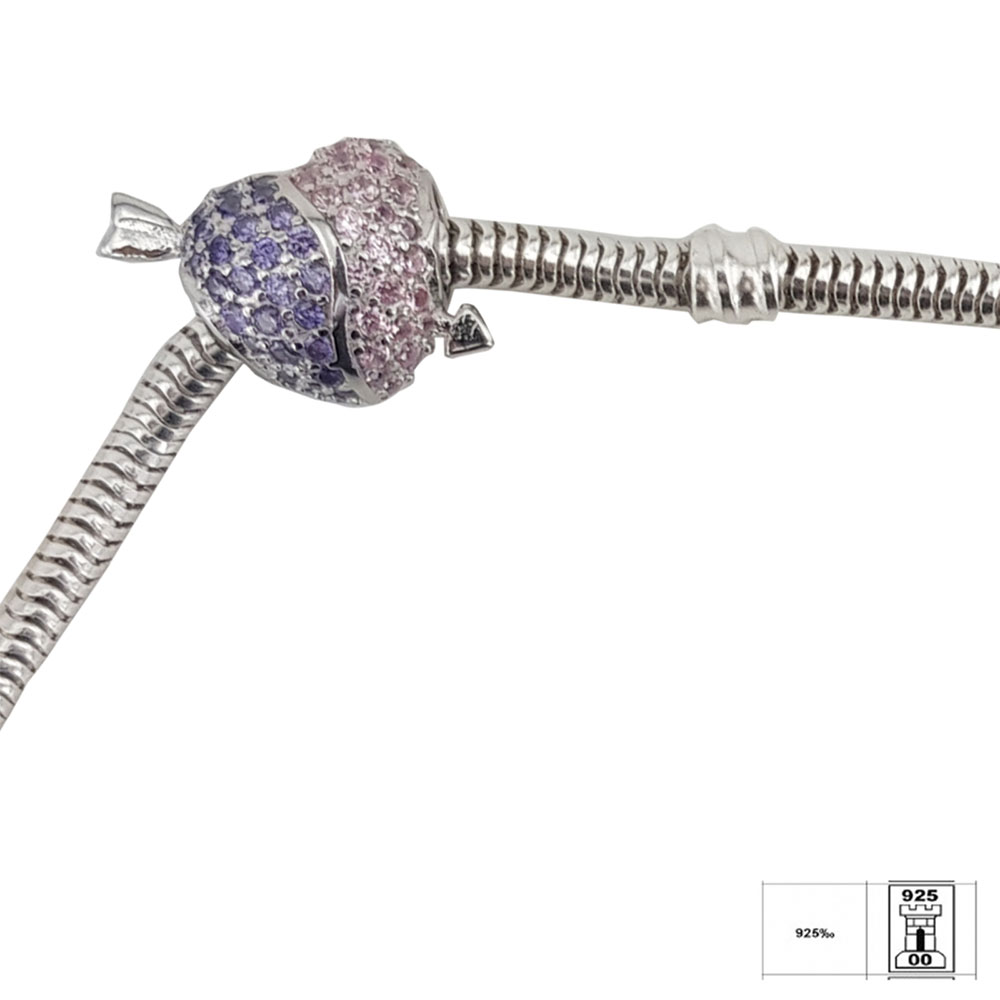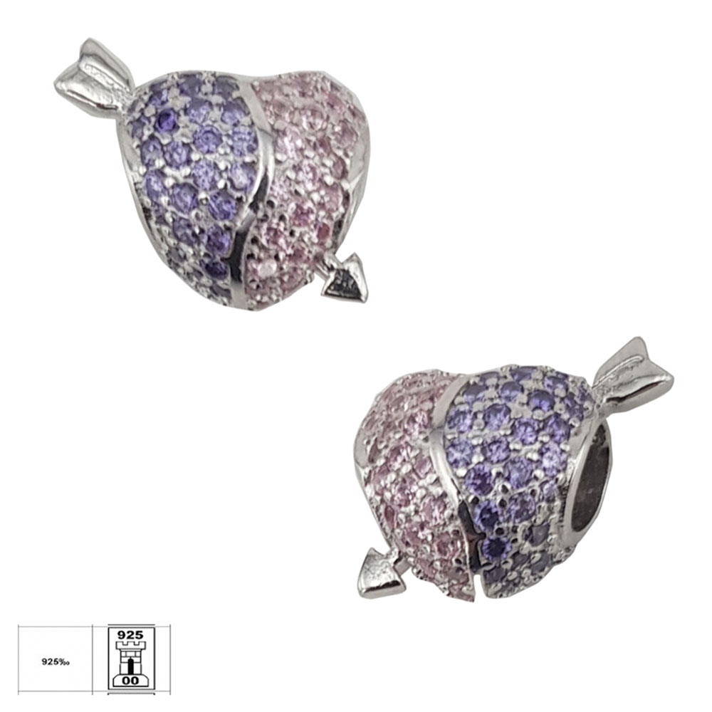 Imbogateste-ti colectia de bijuterii cu acest talisman din argint 925, un accesoriu desavarsit care imbina cu eleganta forma inimii cu stralucirea zirconiilor multicolore. Design-ul sofisticat si culorile vibrante ale zirconiilor roz si mov transforma acest talisman intr-o piesa de rezistenta a oricarei bratari.